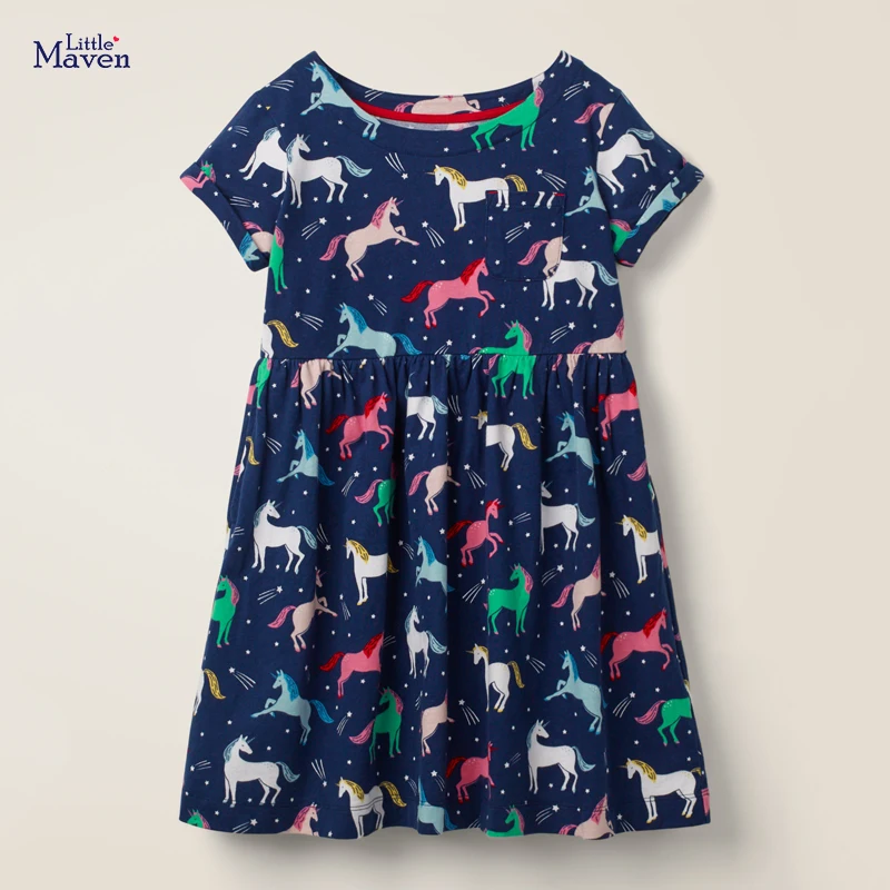 Платье принцессы с единорогом Little maven, летнее кружевное платье с принтом для маленьких девочек 2-7 лет