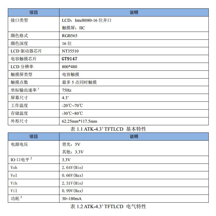 LCD использование 16 бит 8080 Параллельный порт, сенсорный экран использует интерфейс IIC.
