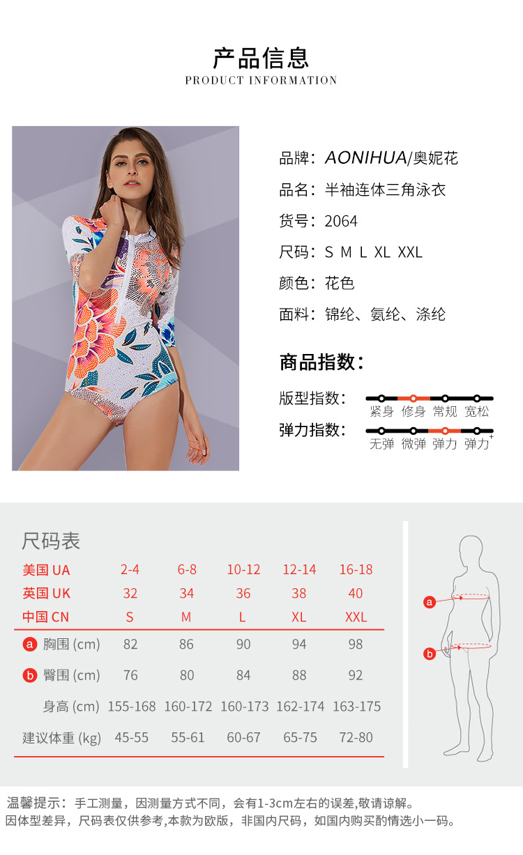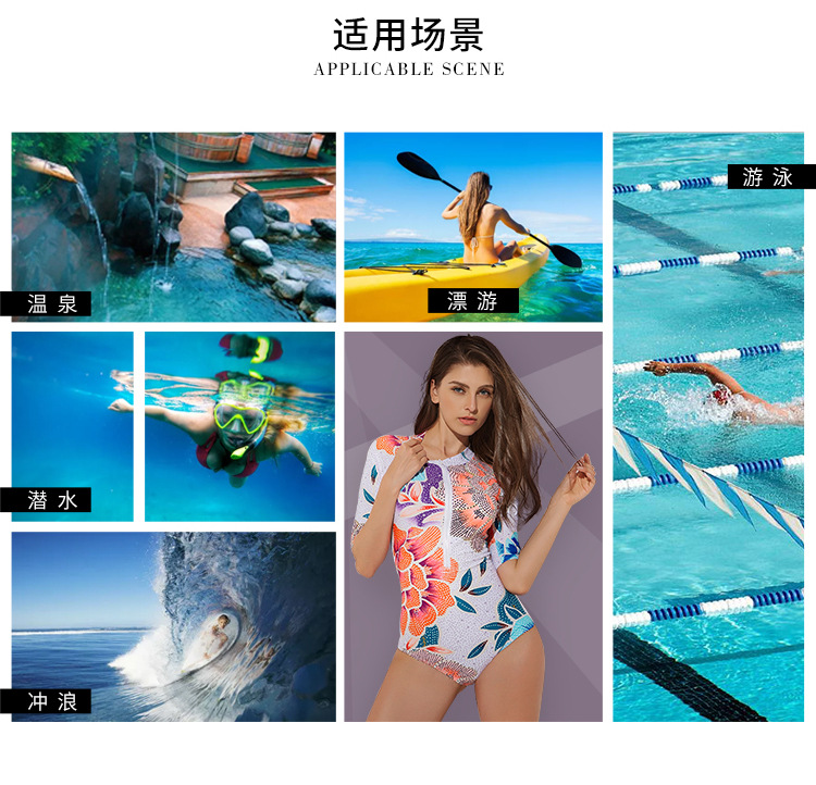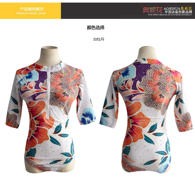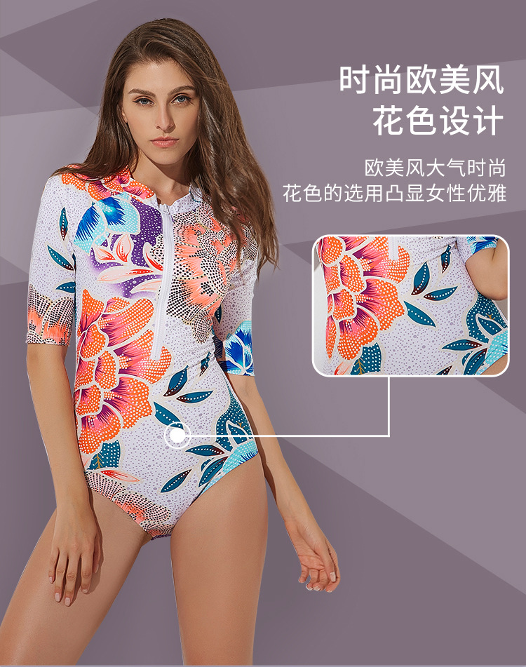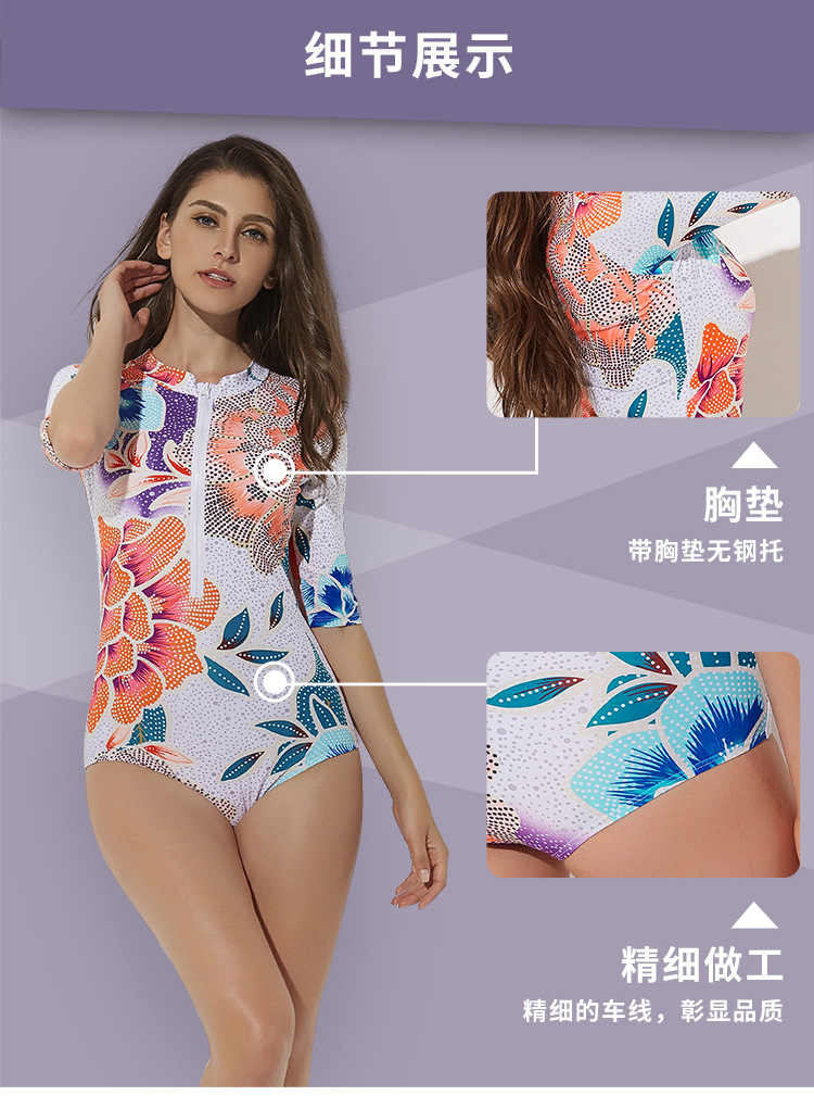 One-piece Set Long Sleeve Zipper Swimming Suits Sun UV Womens Rash Guard Beachwear Women Swimming Suits