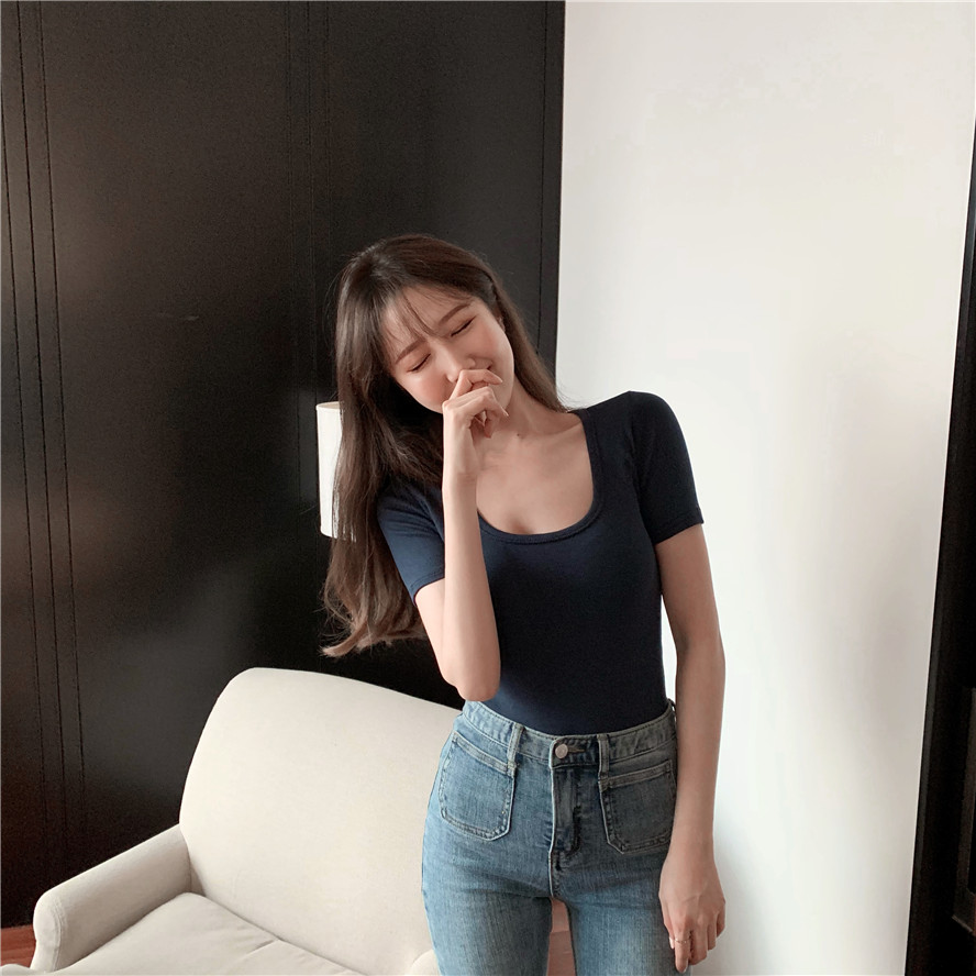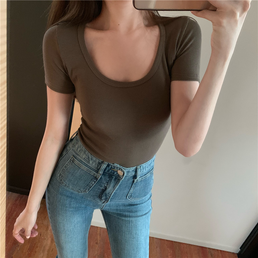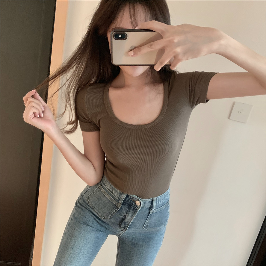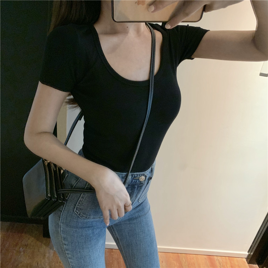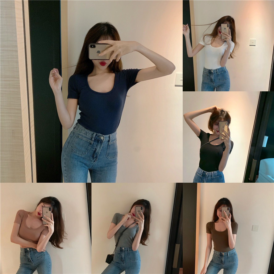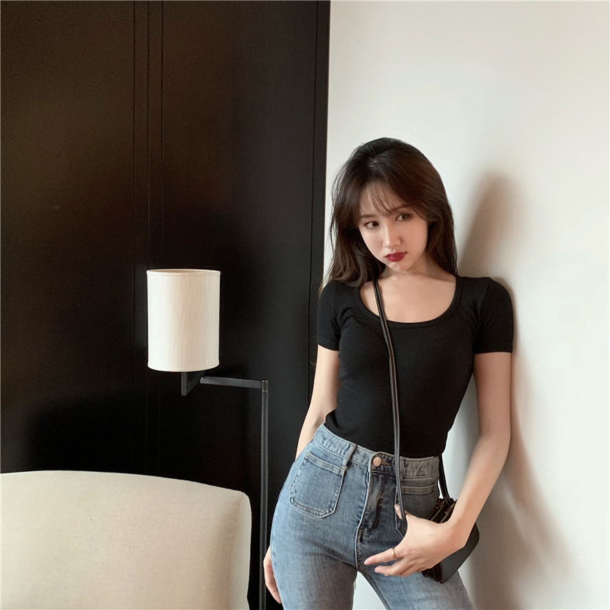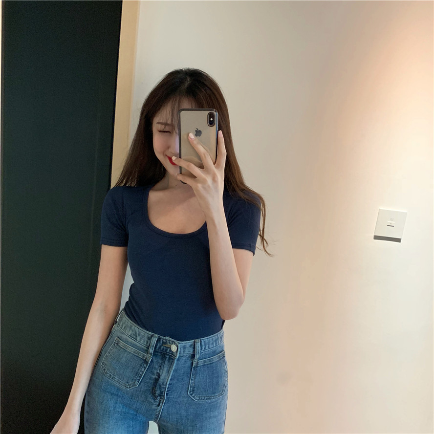Женские однотонные облегающие футболки с круглым вырезом и коротким рукавом, 6 цветов, весна-лето 2019