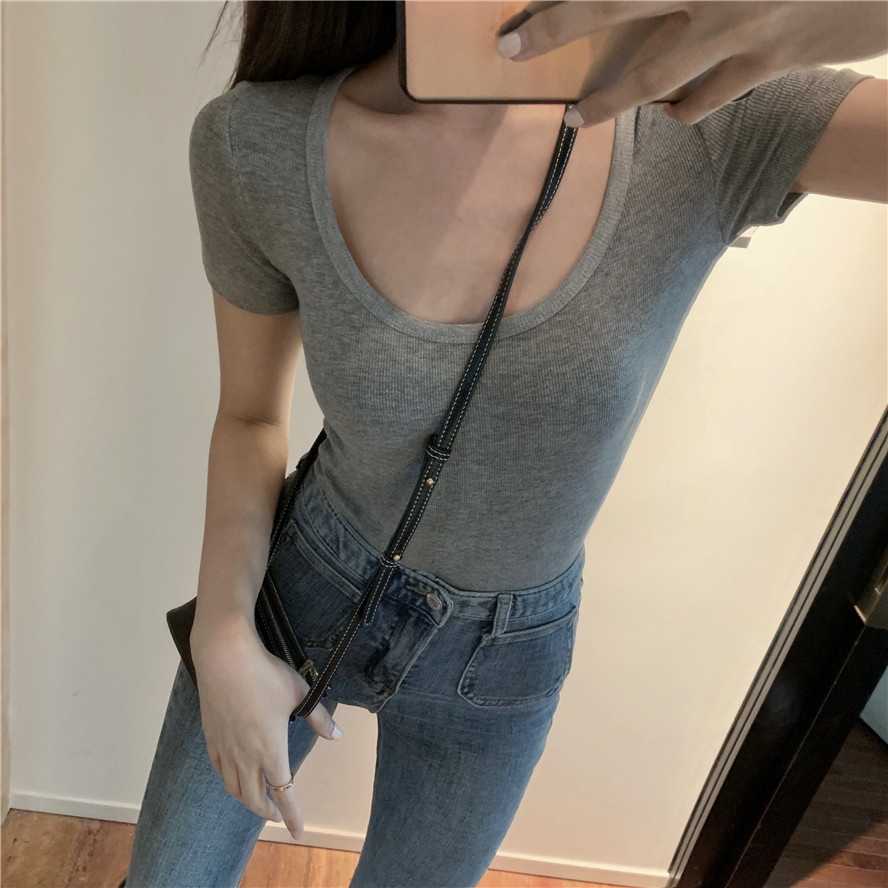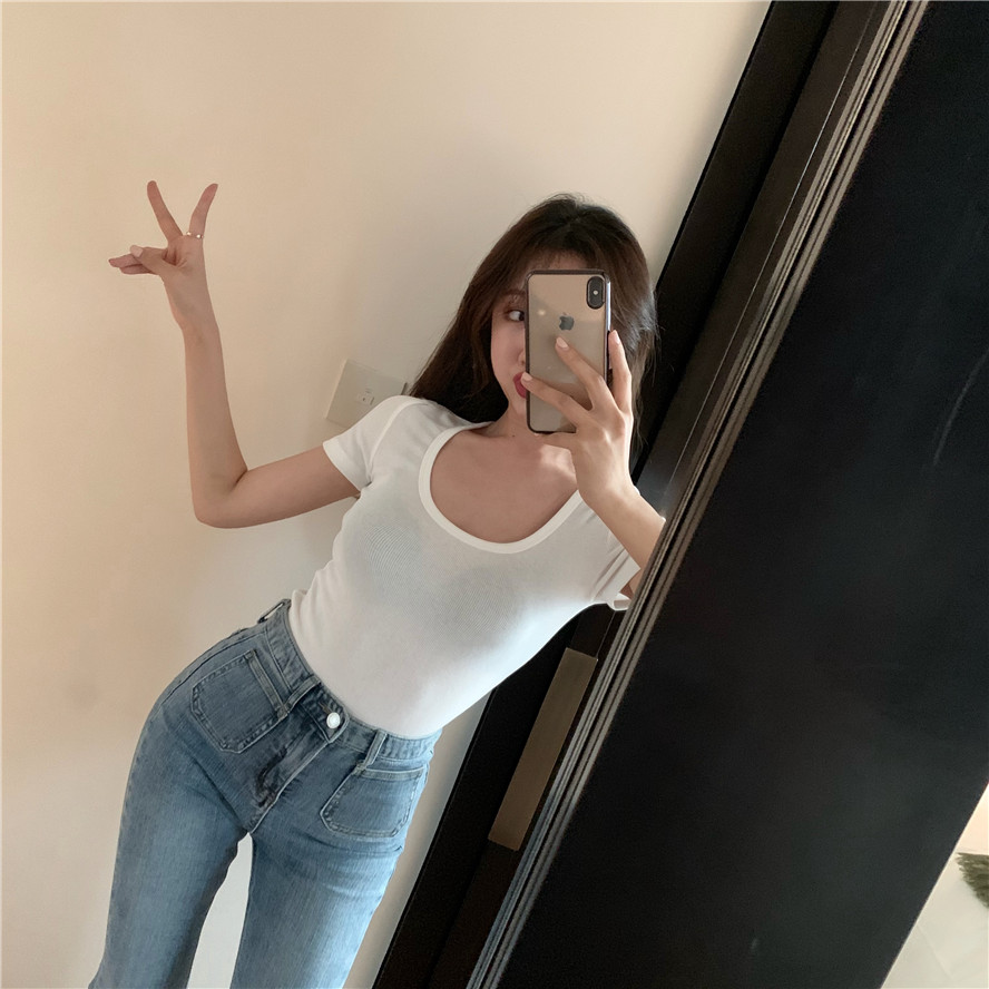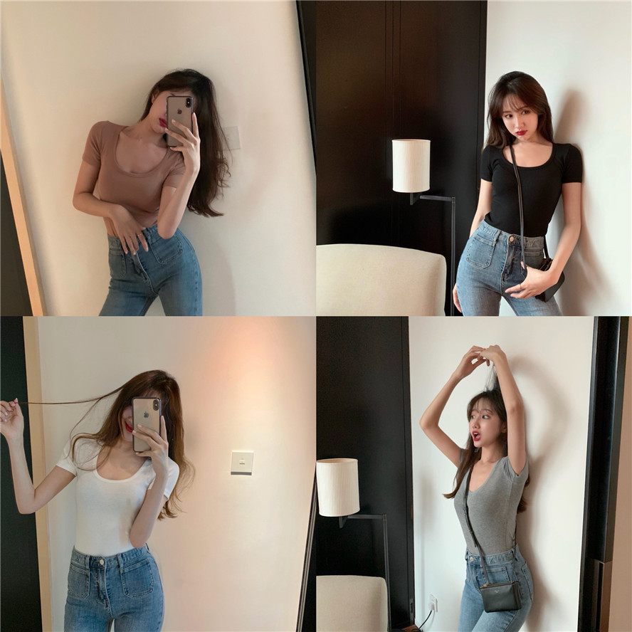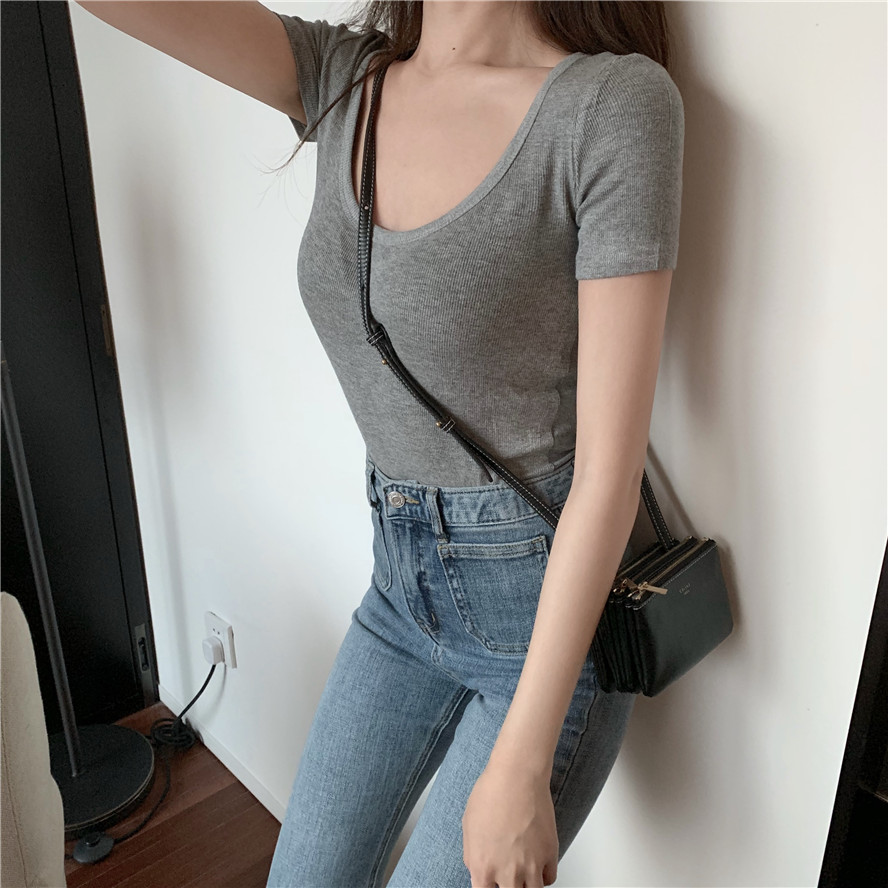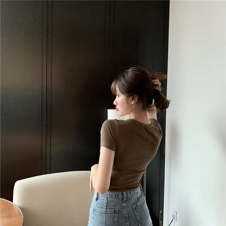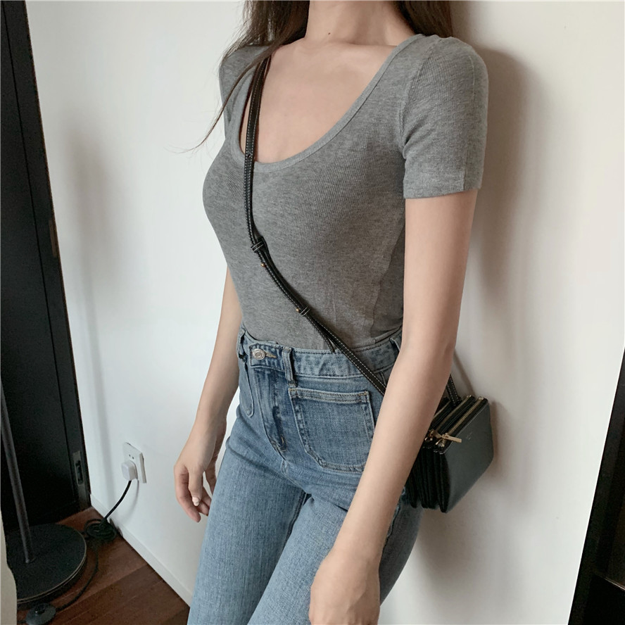 Женские однотонные облегающие футболки с круглым вырезом и коротким рукавом, 6 цветов, весна-лето 2019