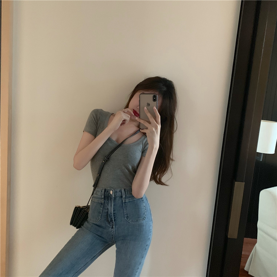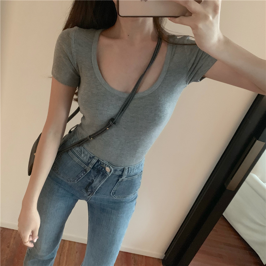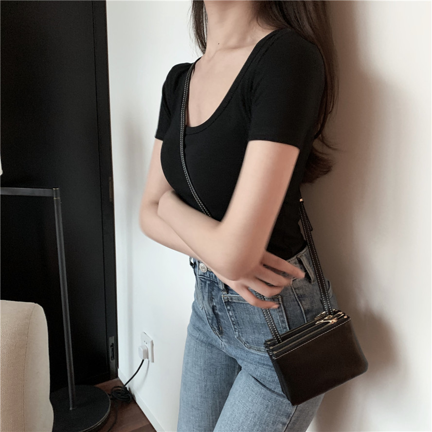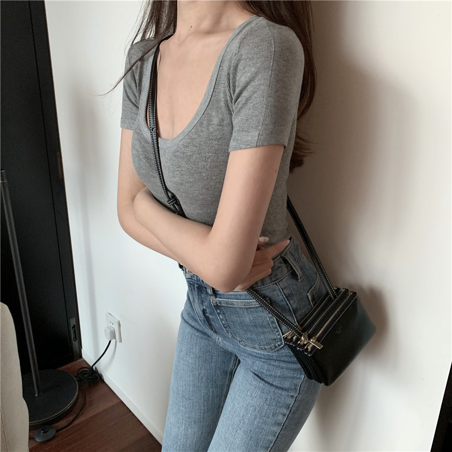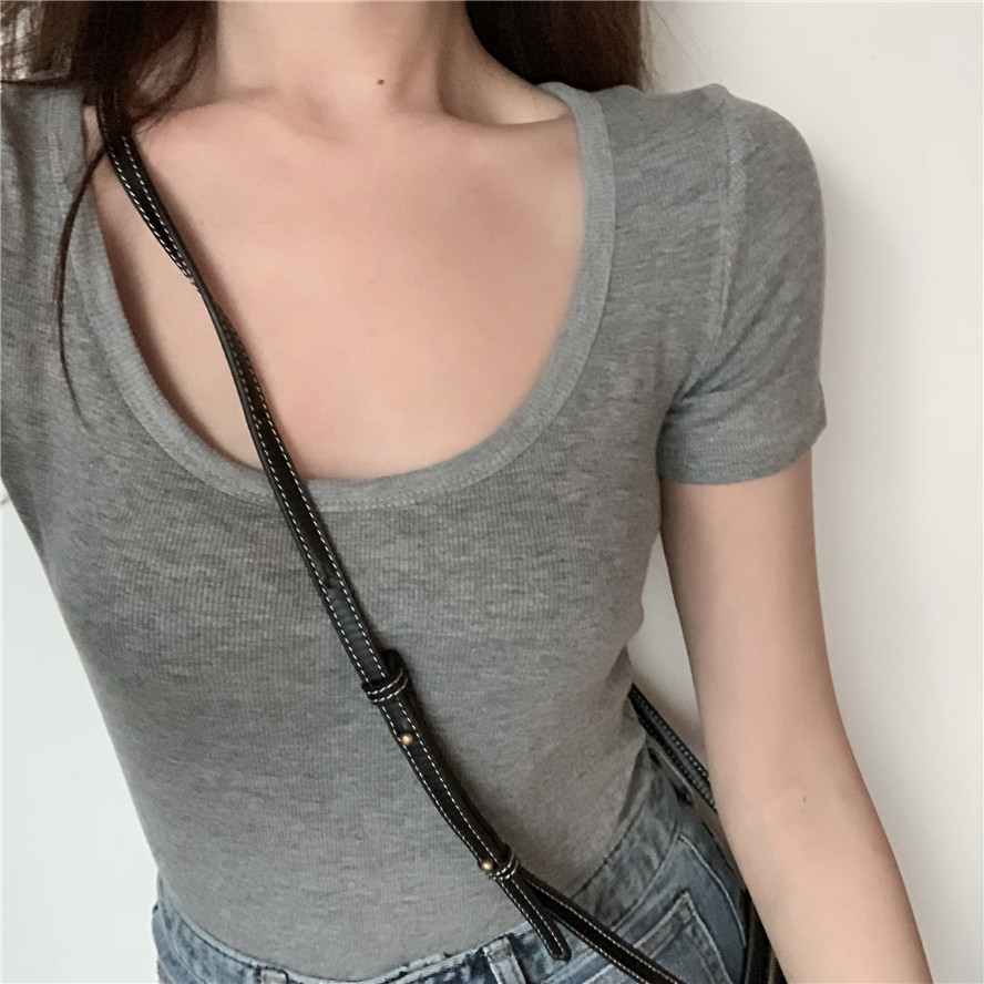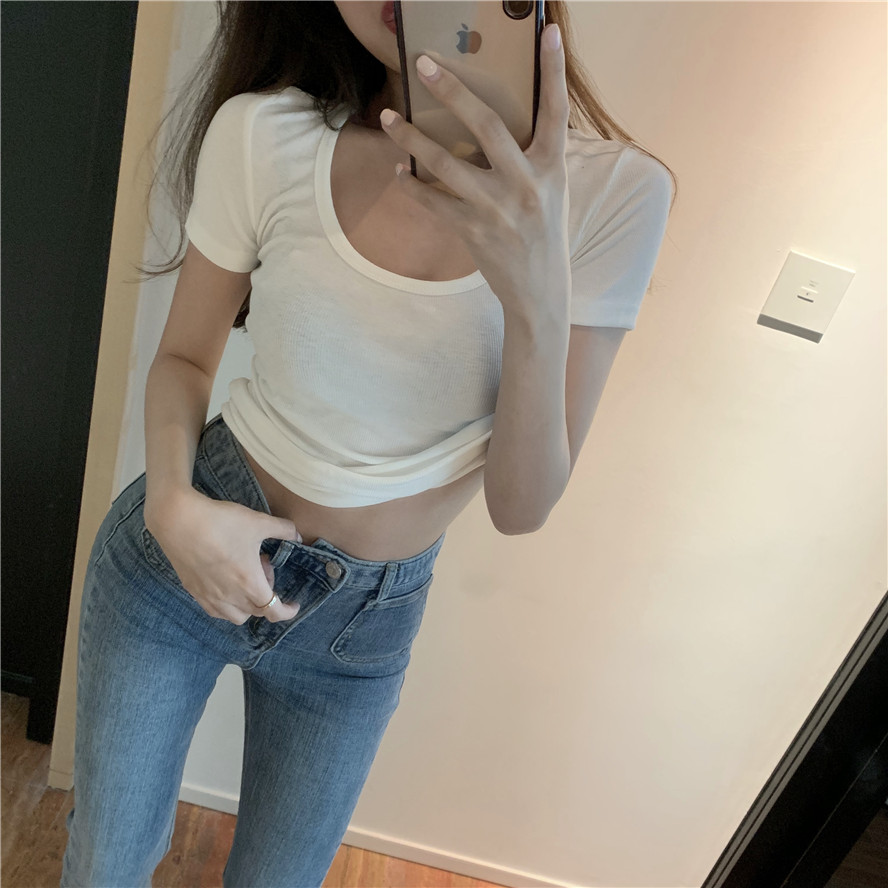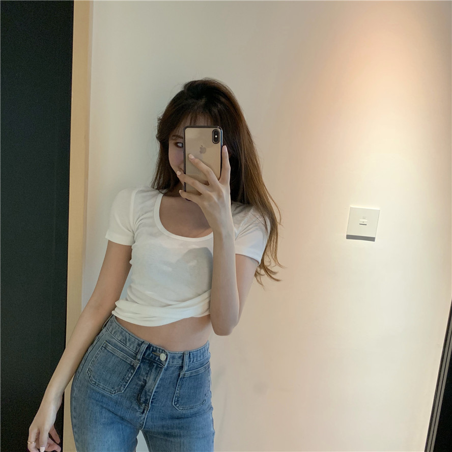 Женские однотонные облегающие футболки с круглым вырезом и коротким рукавом, 6 цветов, весна-лето 2019