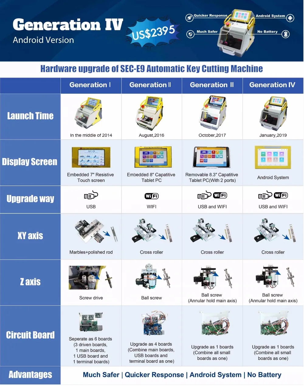 Dears, это 100% оригинальный Sec-E9 портативный умный дублированный автомобильный автомат для резки ключей, может сделать для всех автомобильных ключей и ключей для дома (дубликат и потеря ключа оба могут сделать), он поставляется с 1 автоматический зажим для ключей 1 шт. зажим для ключей 1 шт. односторонний стандартный зажим для ключей 1 шт. трубчатый зажим для ключей 1 шт. FO21 Ford Key Clamp (сделано Arsmundi) 1 шт. LDV F019 Ключ Зажим 1 шт. HU66 VW ключ зажим (сделано Arsmundi) 1 шт. HU64 VW ключ зажим (сделано Arsmundi) 1 шт. зажим для ключей Toy2 1 шт. VA2 Ключ Зажим 1 шт BW9 Ключ Зажим 1 шт. зажим для ключей HU162T 2 шт. резак 2 шт зонд Опционный зажим: зажим для ключа с гравировкой Автоматический слесарный инструмент SEC-E9 автоматическая компьютеризированная Дубликатор кода ключа режущая машина для того чтобы сделать автомобиль мотоцикл местный ключи SEC-E9-это универсальная машина для резки и копирования ключей. Его embedded8 ”емкостный планшетный ПК значительно облегчает использование машины. Благодаря встроенному декодеру и возможности чтения ключей, это машина, которая подходит для дублирования ключей, а также для создания ключей от биттинга.