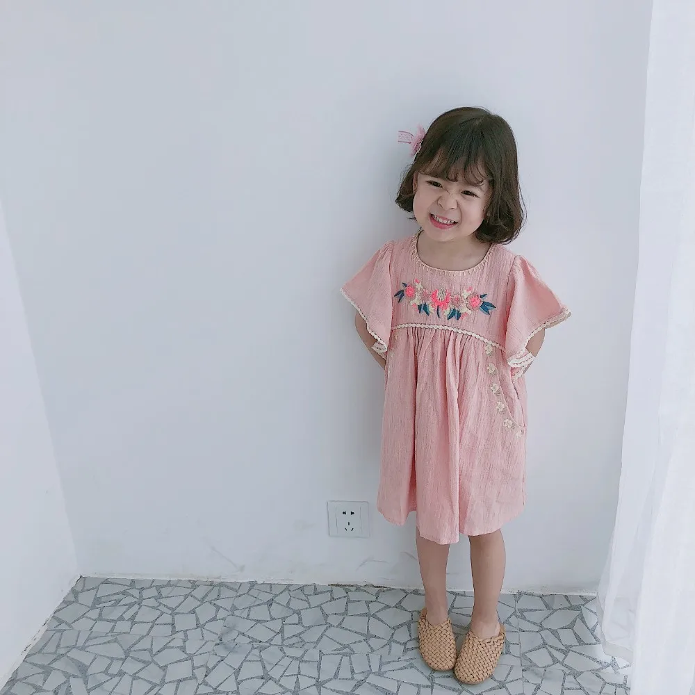 Детское платье, бренд L & M, весна-лето 2019, платья с короткими рукавами и цветочной вышивкой для девочек, Новая Модная хлопковая одежда для малышей