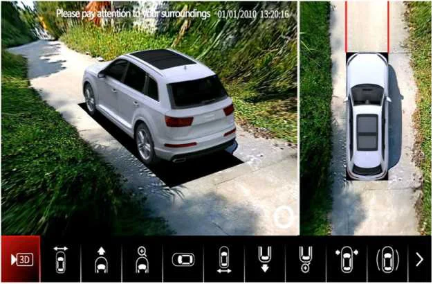 Около 360 панорамных парковок проходит через установленные спереди и сзади 4 Ультра широкоугольных рыбий глаз камеры автомобилей сбора вокруг изображения в то же время, через блок синтеза; алгоритм коррекции искажений изображения, Сращивание и слияние, формирует изображение транспортного средства около 360 градусов 2d и 3d панорамы, Передача в реальном времени на центральный экран, заставит водителя на дисплее окружающей среды визуализировать тело на земле, нет перспективной слепой области, может помочь водителю четко определить, есть ли какие-либо препятствия вокруг транспортного средства; Помочь водителю легко справиться со сложными поверхностями и припаркованными транспортными средствами. Продукт прост в установке, стабильный и надежный.