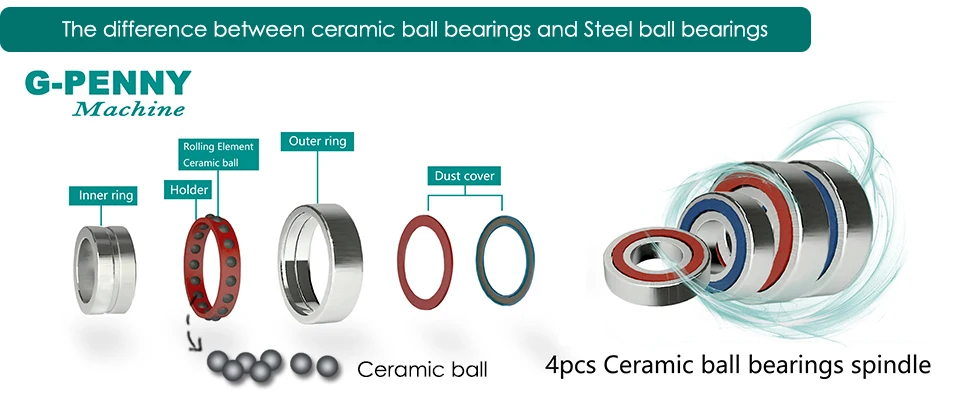 4.Если вы хотите использовать шпиндель для алюминия, твердой древесины, то керамические шариковые подшипники лучше, чем стальные шариковые подшипники.
