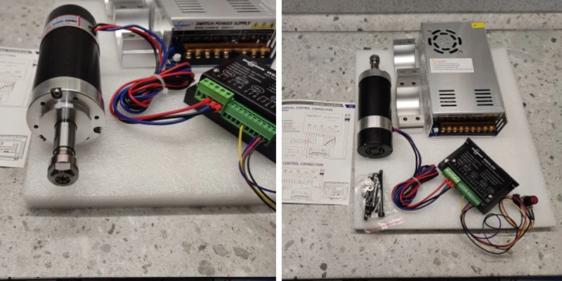 ER11 600 Вт бесщеточный электродвигатель вращения шпинделя 0.6квт высокоскоростной набор шпинделя с воздушным охлаждением 220 В используется для сверлильного станка Параметры шпинделя: Максимальная выходная мощность: 600 Вт, Напряжение: 310, постоянный ток: 2,2 Максимальный крутящий момент: 0.6нм Холостого хода: 9000р/мин Диаметр шпинделя: 55 мм стандарт: ER11 удлинитель и 3,175 мм Цанга Параметры шпинделя: Максимальная выходная мощность: 600 Вт, напряжение: 48 В постоянного тока Холостого хода: 0-9000р/мин Диаметр шпинделя: 55 мм Стандарт: ER11 удлинитель и 3,175 мм Цанга Этот шпиндель следует использовать с драйвером в этом комплекте. Параметры драйвера: Входное напряжение: 24-50 В постоянного тока