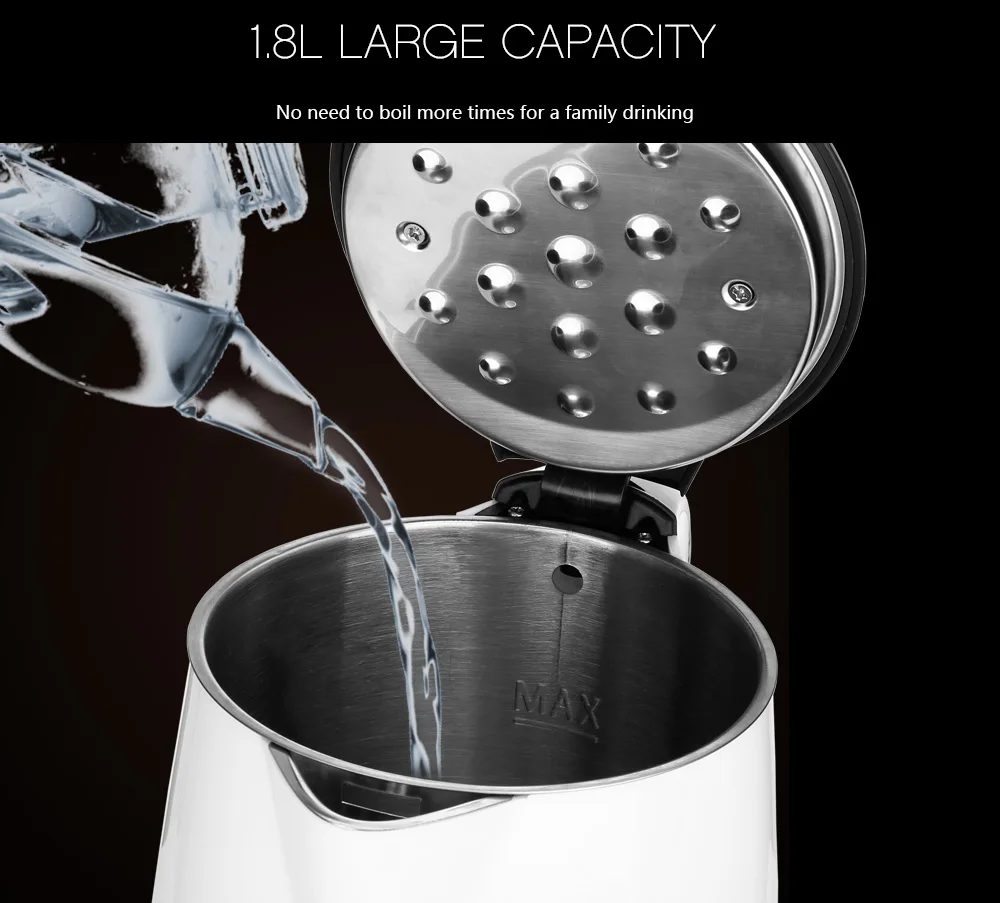 Хороший Электрический чайник для воды обеспечивает здоровый напиток. С большой емкостью 1,8 л, вы можете быстро кипятить воду и сэкономить ваше время.