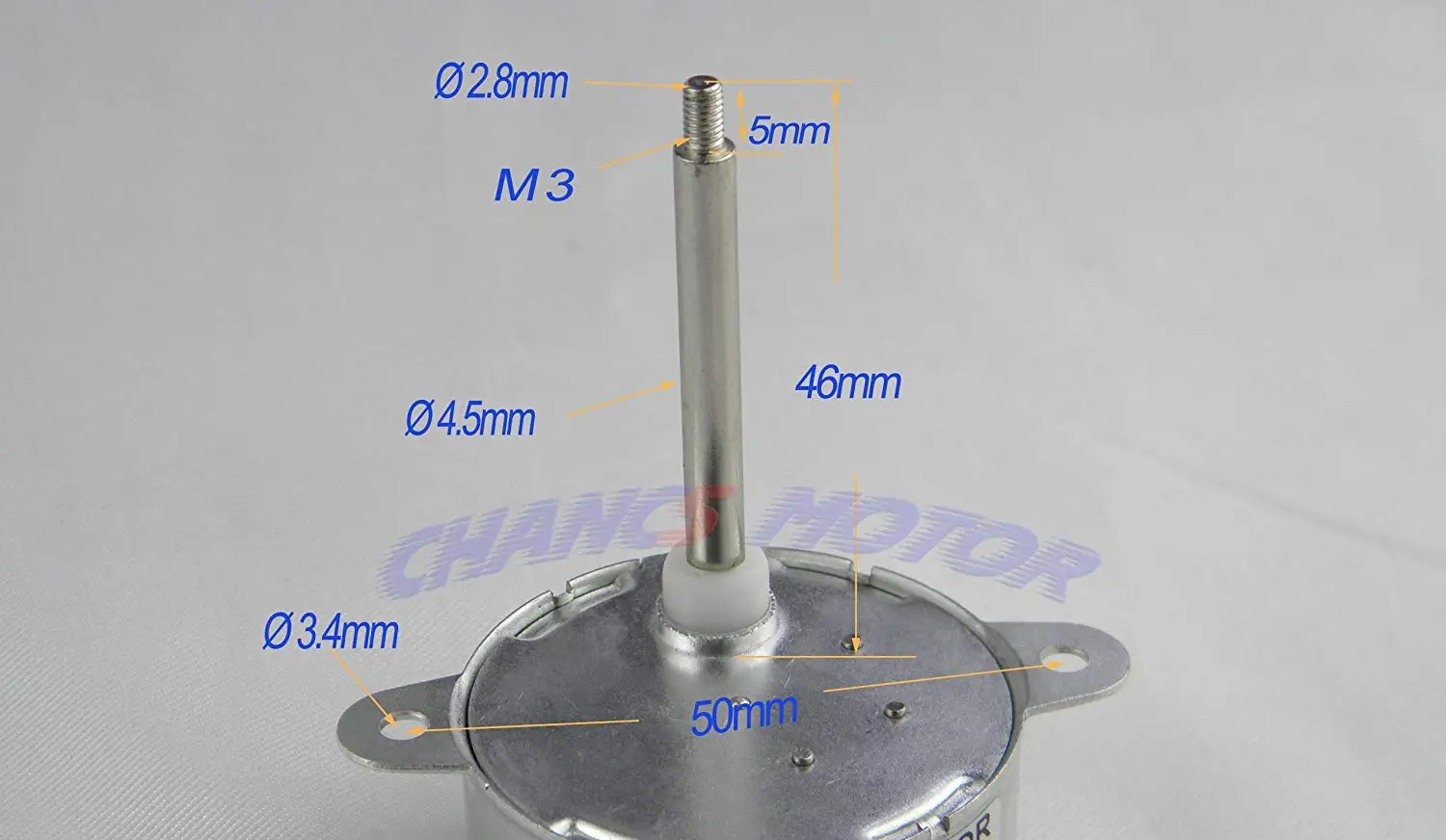 Этот синхронный двигатель работает на 12 В постоянного тока.