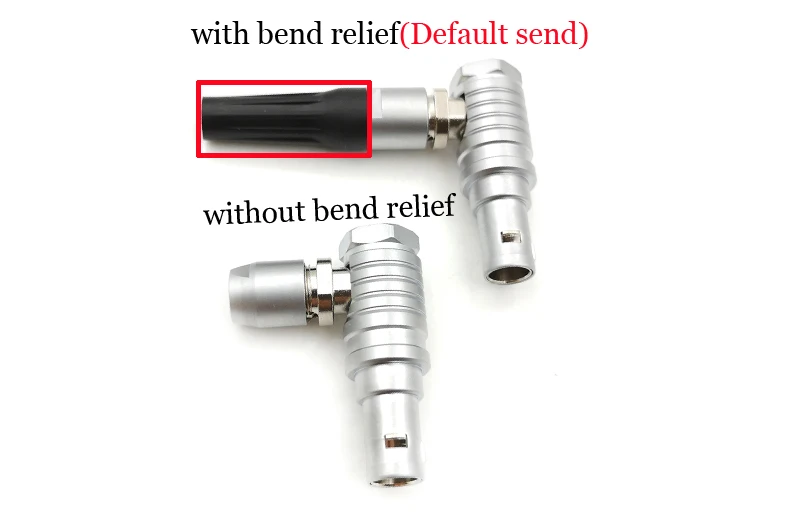Note: (as shown in the figure)We have two styles of this connector, "without bend relief " and " with bend relief(Default send)" .