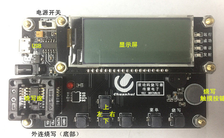 This coder is an upgraded version of HCS301 coder. In addition to improving the settings of HCS201 and HCS300/HCS301, HCS200 and HCS101 are added to support the manufacturer code writing of rolling code decoding (simple mode and general mode) developed by PIC16F684 and PIC16F1823. No custom decoding software is needed. Users can change the manufacturer code by themselves, write it many times, and can not read it out, so as to ensure safety. At the same time, the function of writing to other HCS chips is being developed. As long as the coder software is updated at any time, it can be supported without changing the hardware and upgraded free of charge. This burner supports offline on-line burning, and can also input manufacturer code for analog programming. The analog device is HCS300/301, normal learning mode, and baud rate is 400us.