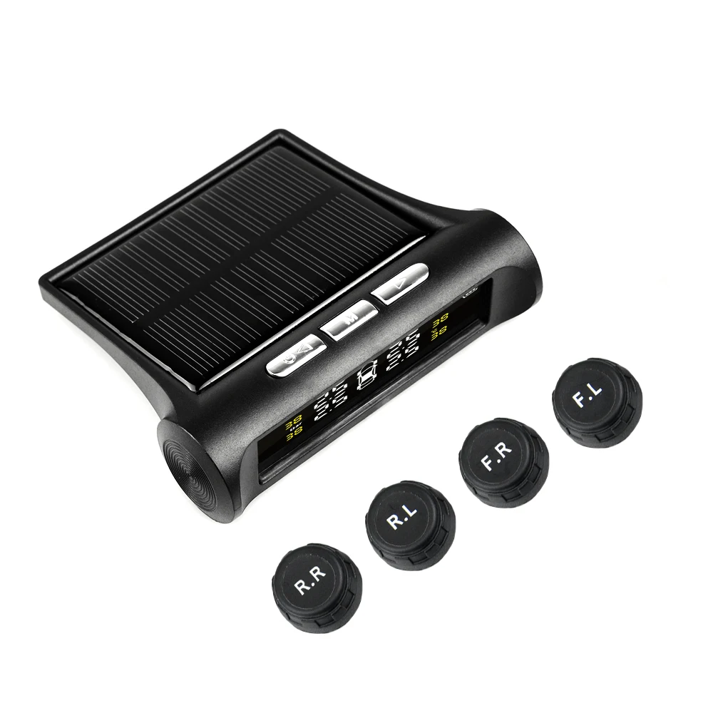 Состав солнечной TPMS такой же, как у обычных TPMS (система контроля давления в шинах), которая состоит из солнечного TFT экрана, принимающего дисплей и четырех датчиков давления/излучателей. В качестве мощной панели генерации энергии долгий срок службы, чтобы обеспечить в любое время зарядку, так что прием монитора питания более надежный и долговечный; даже в условиях отсутствия солнечного света в темной среде, дождя и снега погодные условия по-прежнему могут служить более 15 дней, есть интерфейс USB зарядного устройства, Устройство с двойной зарядной системой обеспечивает постоянный срок службы устройства.