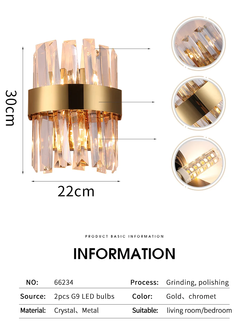 Номер товара: 66234-1 Стиль товара: современный Цвет изделия: хром Размер изделия: ширина 22 см, высота 30 см Материал: нержавеющая сталь, кристалл K9 Источник: светодиодный светильник Цветовая температура: теплый светильник (3000K), холодный светильник (6000K) Напряжение: AC90-260V Доставка: 6-8 дней Применение: гостиная, столовая, спальня