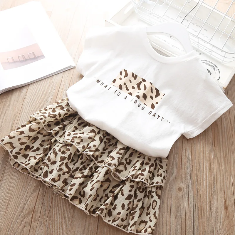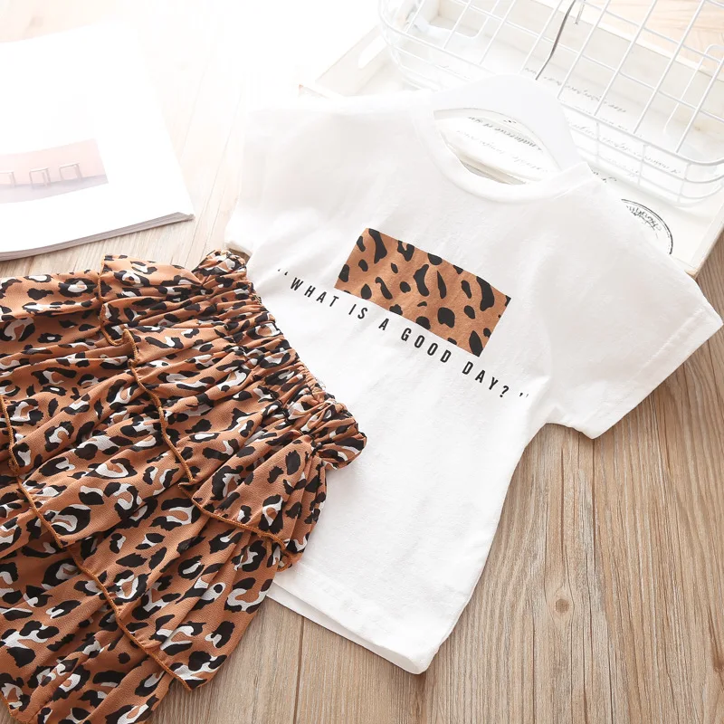 Летняя одежда для девочек футболка в горошек + леггинсы юбка штаны комплект