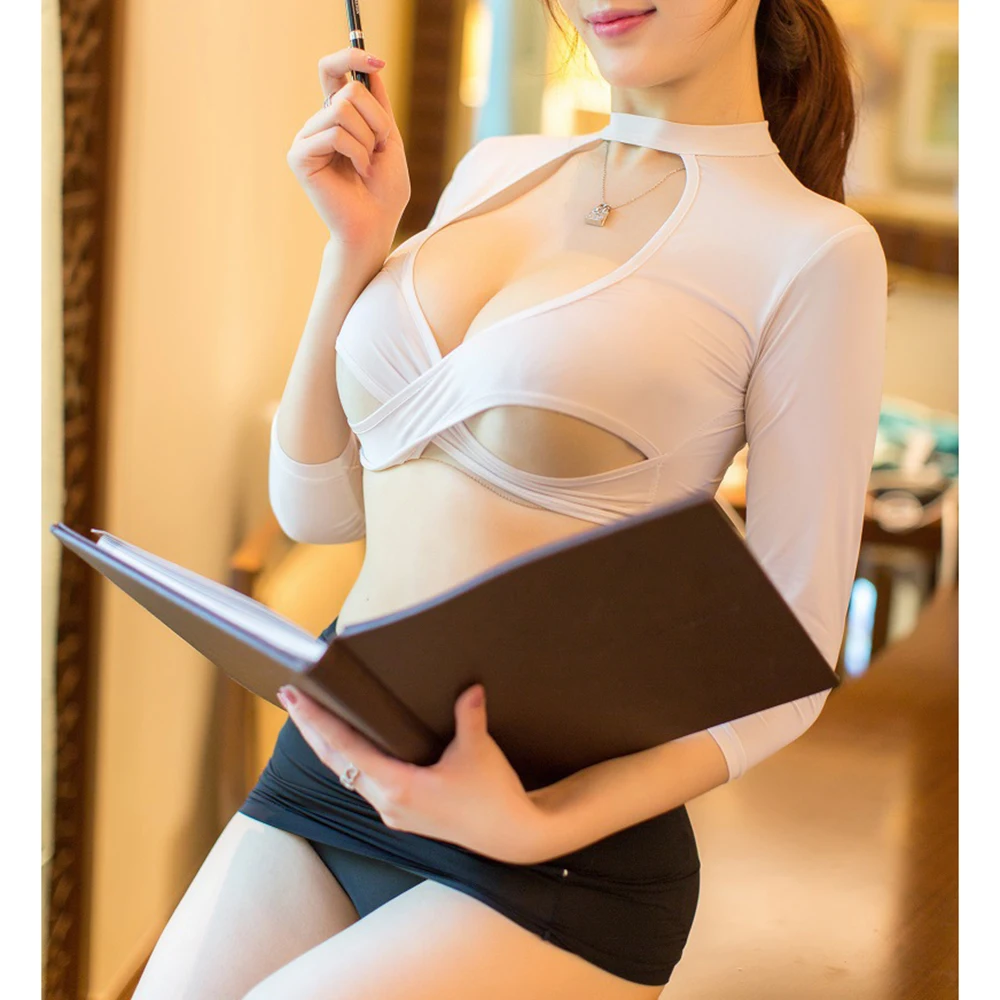 Сексуальная Женская взрослая форма секретаря, костюм, нижнее белье, топ, мини юбка, комплект, эротические костюмы для косплея, искушение, 2018, новая мода, белый цвет