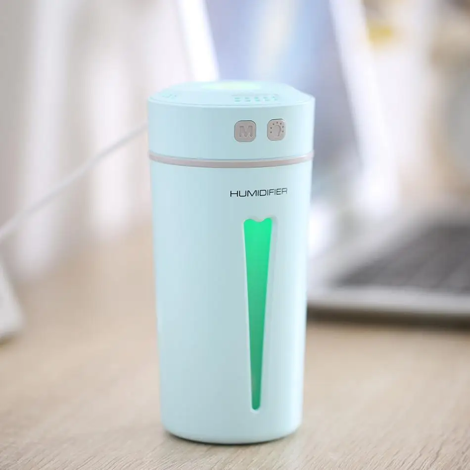 Этот портативный увлажнитель разработан с уникальной формой чашки, очень удобен в использовании. Он может стабильно стоять за противоскользящее Силиконовое дно. Он бесшумный при работе, который обеспечивает комфортную и спокойную среду сна. Удобный источник питания USB, его можно использовать в автомобиле, офисе и спальне.