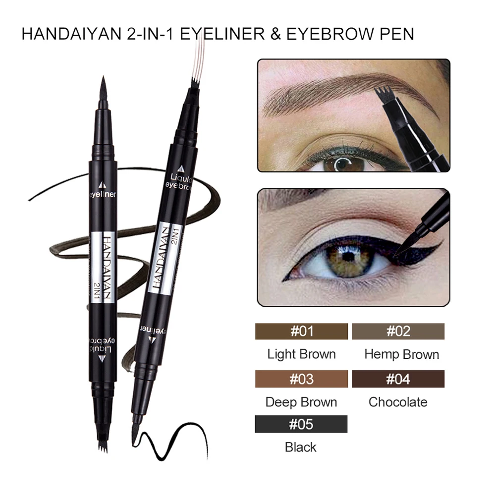 Двойного использования, один конец-это четырехконтурный карандаш для бровей, так что брови окрашиваются как узор бровей, более естественный, чем карандаш для бровей; другой конец-ручка для подводки глаз, которая быстро и легко подчеркивает различные люверсы.