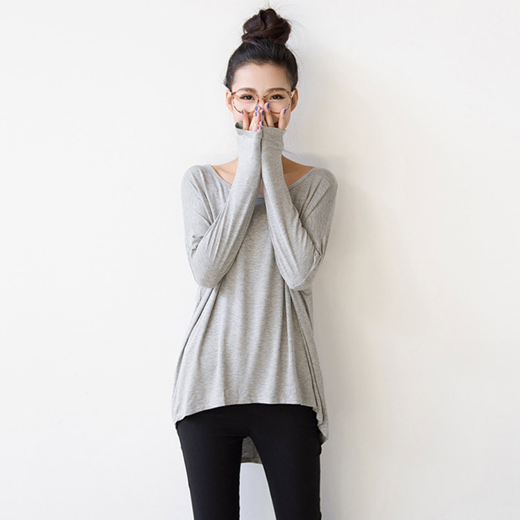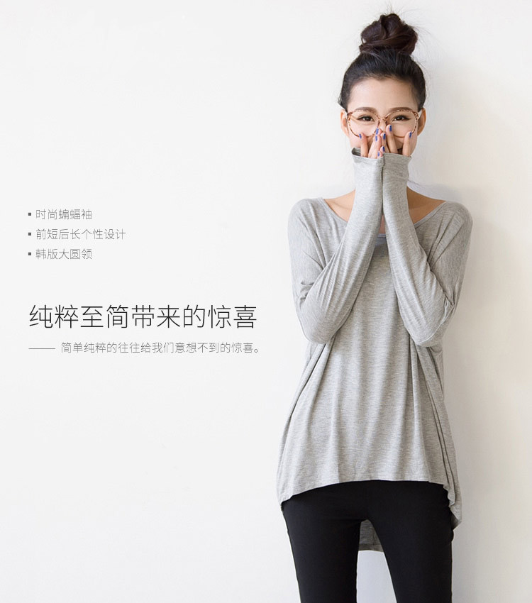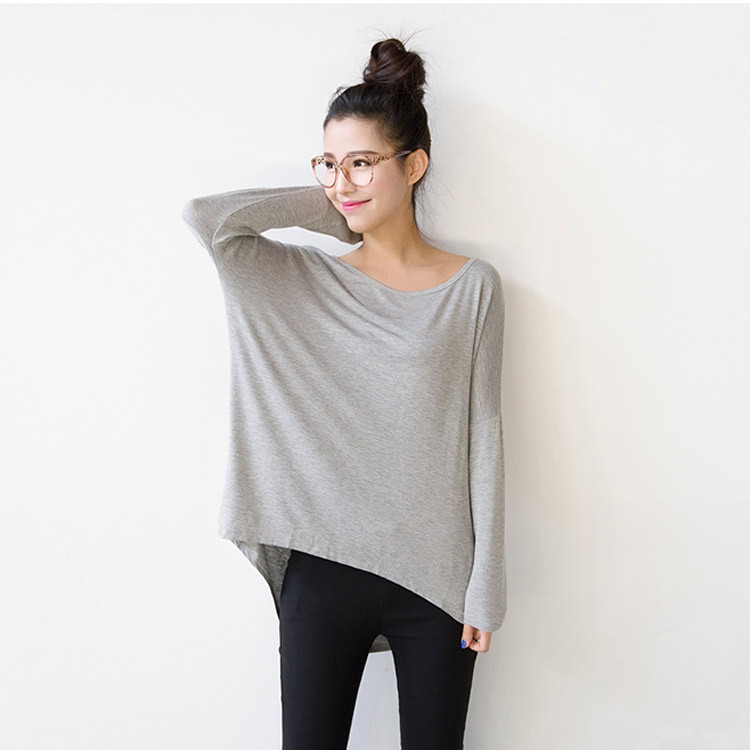 Новая весенняя Хлопковая женская футболка с длинным рукавом для женщин с круглым вырезом рукав летучая мышь Повседневный свободный большой Размеры Асимметричная длинная и изображением героев мультфильмов