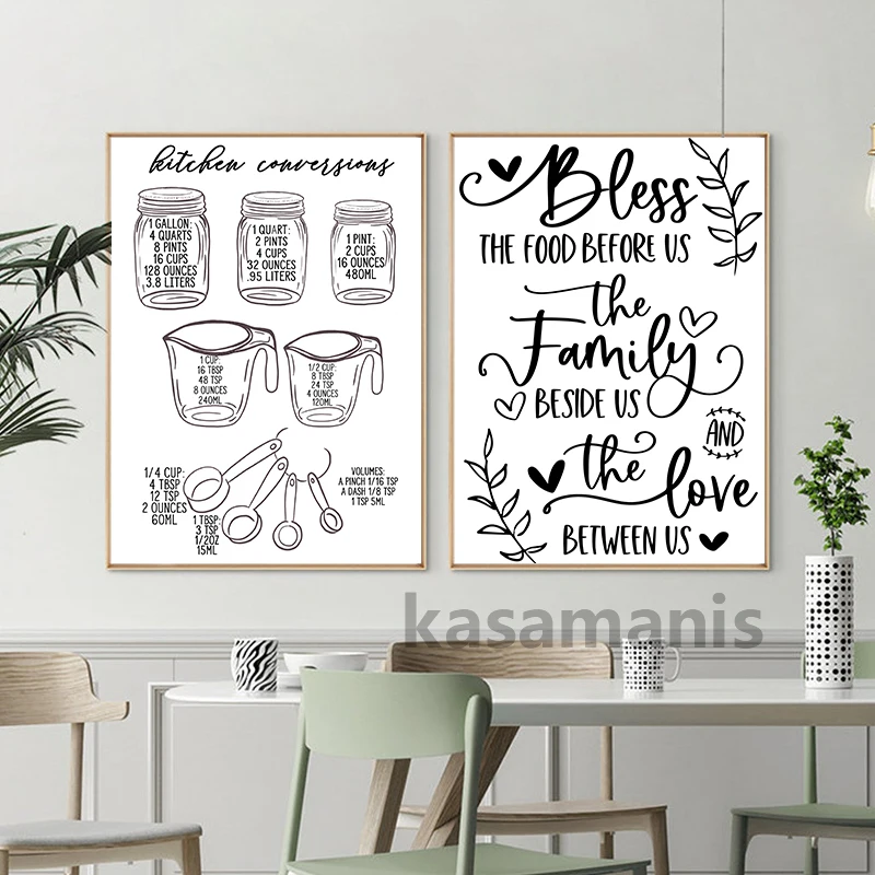 Kitchen Conversions Modern Farmhouse Poster And Print , Kitchen Quote Minimalist Canvas Painting Picture Home Wall Art Decor