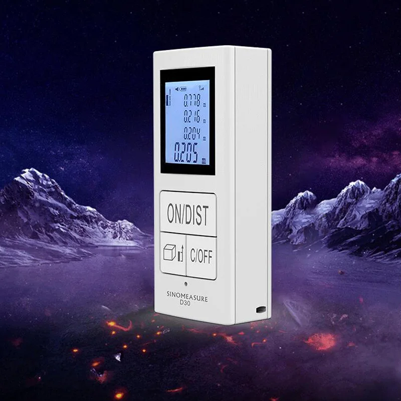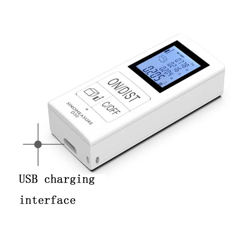 Маленький размер, легко носить, можно измерить в любое время Встроенный 200 мА Электрический литиевый аккумулятор, непосредственно использовать usb-кабель для зарядки, использовать Безопасный и безопасный, энергосберегающий и низкое потребление ЖК-дисплей высокой четкости с экраном с подсветкой, четкий и интуитивно понятный дисплей данных, легко измерять и читать даже в темных условиях Оптическая линза с двойным датчиком для быстрого измерения и высокой точности IP54 Водонепроницаемый дизайн, корпус плотный и бесшовный, эффективно предотвращающий проникновение воды и продлевая срок службы Широко используется в измерениях высоты, инженерных измерениях, складской логистике, дизайне интерьера, измерениях высоты и т. д. Спецификация: Диапазон измерения: 30 м Точность: ± 1,0 мм Хранение данных: 20 групп Защита от пыли и брызг: IP54 Диапазон температур: -20-50 °C Материал: пластик + металл Аккумулятор: usb-кабель для зарядки