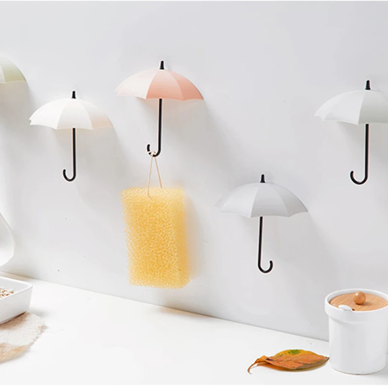 3 шт./компл., разные цвета, маленький зонт, пластиковый настенный крючок, милая Домашняя одежда, держатель для ключей, настенная кухонная настенная дверь