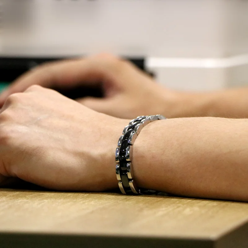 Olowu, мужские, Heathy Care, магниты, серебряные браслеты-обручи, тон, нержавеющая сталь, черный, керамический браслет, энергия, ювелирные изделия для женщин