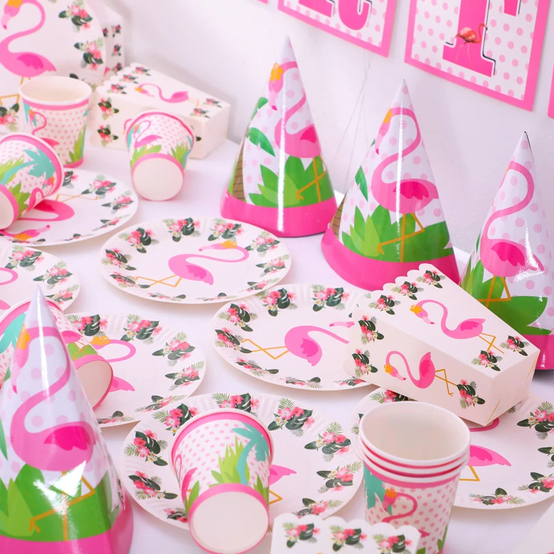 10 детских одноразовых столовых приборов с фламинго, с днем рождения, праздничные принадлежности, украшение для праздника, для маленьких мальчиков
