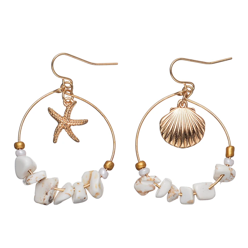 Женские серьги в виде ракушек с изображением морской звезды, большие круглые серьги в стиле панк с металлическим камнем, богемные пляжные вечерние серьги в гавайском стилеUS $2,20