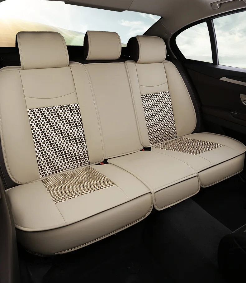 TIPS: It is easy to install,don't need professional experience. If you need video of instruction,please contact seller.The seat cover set includes hooks and fasteners,they are used to fix seat covers,so it can't move. Material: The material is made of 3 layers,the top layer is artificial leather,the middle is sponge,the bottom is cloth,about 0.8 cm thick,high quality,environmentally friendly,odorless. Characteristics: Protect your vehicle's Resale ValueOur seat covers have a stretchability, the rear seat covers are normally 52 inches(132cm)which can be extended to 56 inches(142cm). By removing the middle part, it can be shortened to 40 inches(102cm)help you easily expand or shorten the cover to suit for your car seat model.