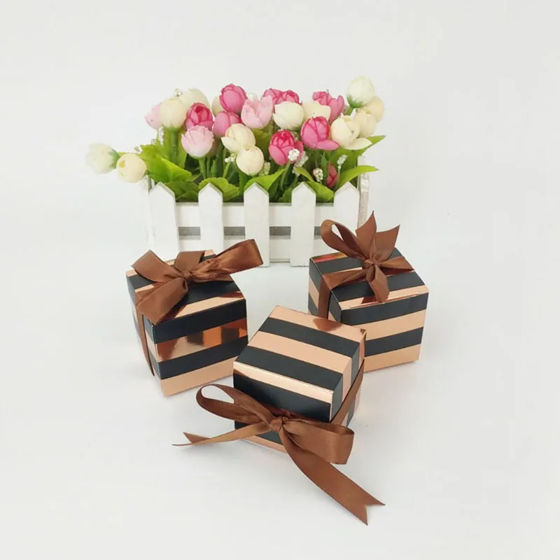 Бренд S10 шт, розовая золотая полоса, конфетная коробка, квадратная Подарочная сумка из крафт-бумаги с шелковой лентой, шикарная Свадебная подарочная коробка, поставка 5.5x5.5x5.5cmtory