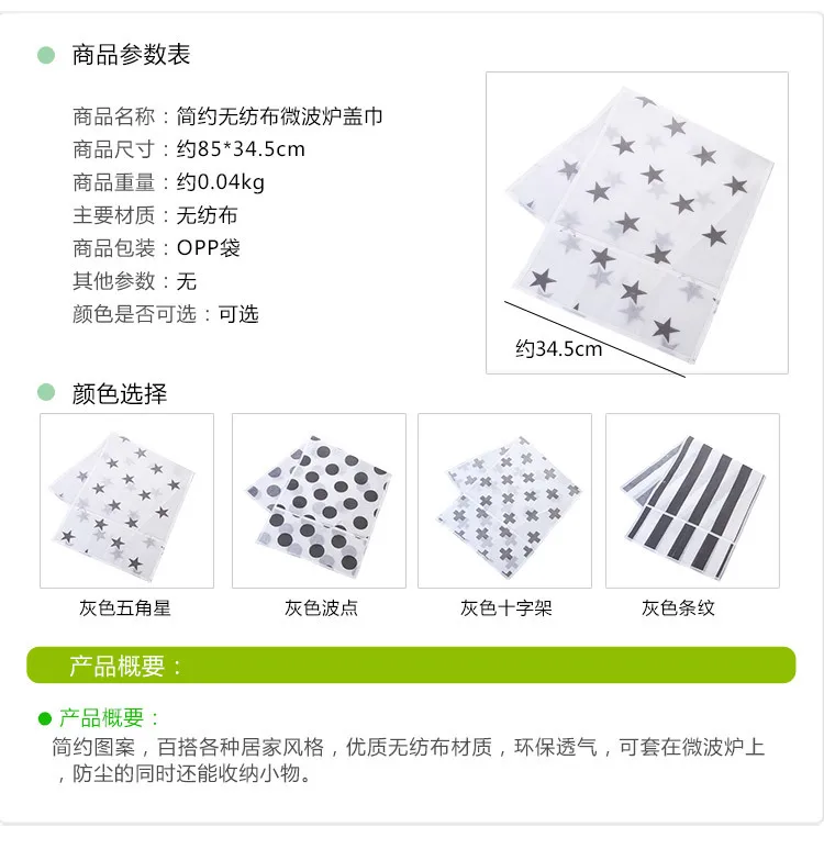 Название продукта: простое нетканое полотенце для микроволновой печи Размер изделия: около 85*34,5 см Вес изделия: около 0,04 кг Основной материал: нетканый материал, не влияет на Упаковка продукта: OPP мешок
