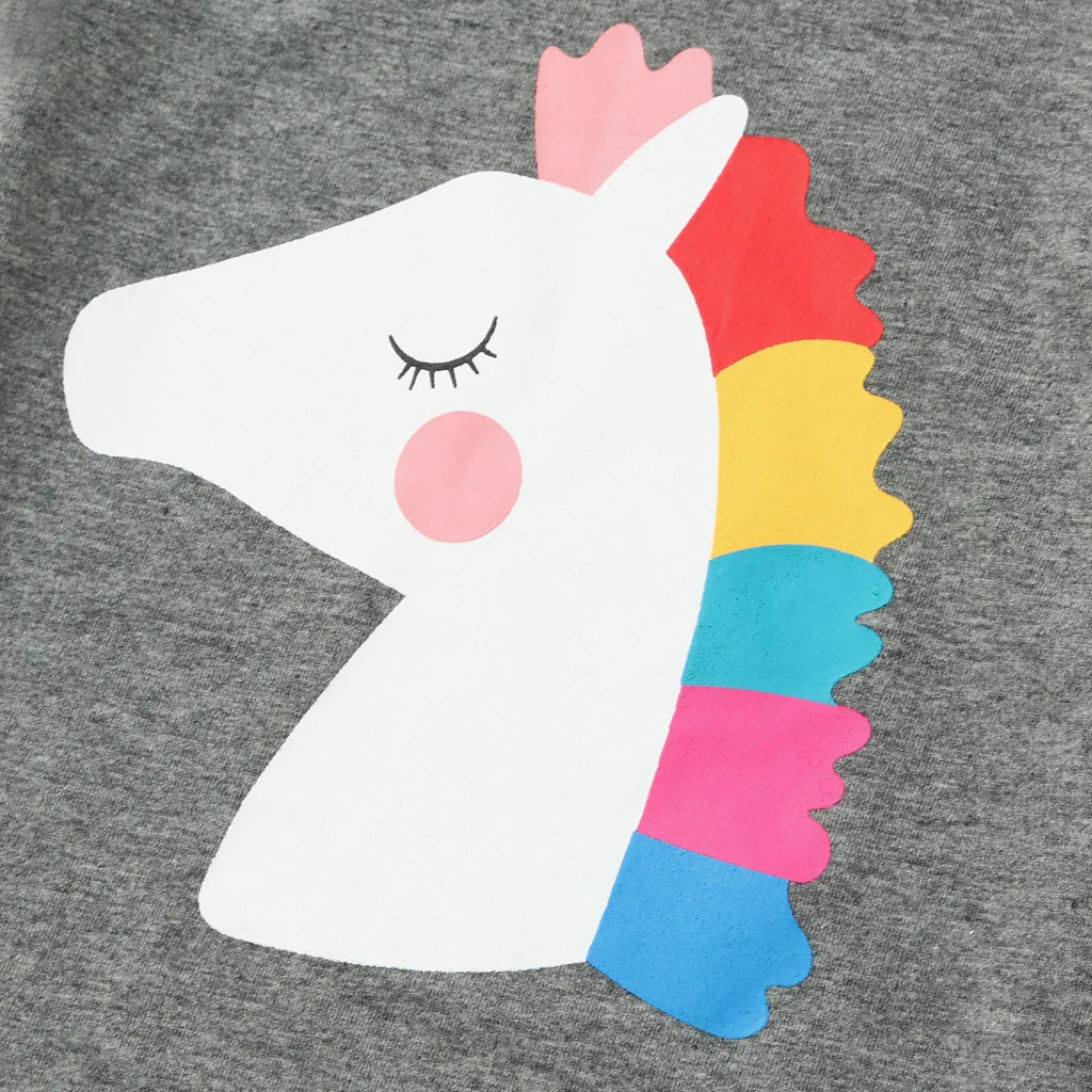 Топы для маленьких девочек с принтом лошади из мультфильма, футболка + юбка-пачка с радугой, наряды