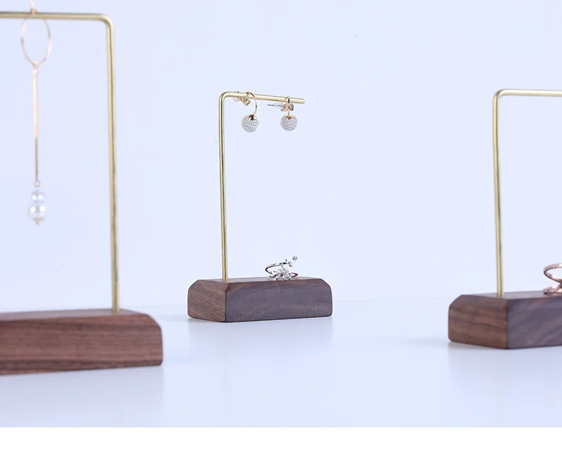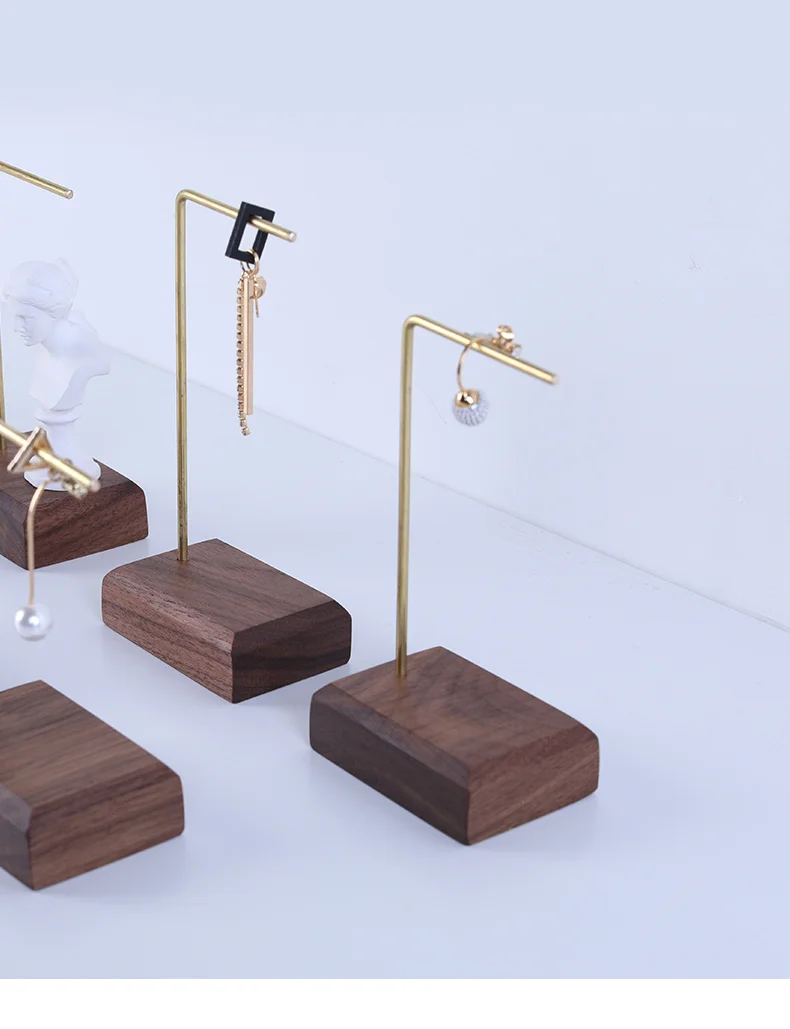 Черный грецкий орех цельный деревянный блок серьги висячий крючок подставка держатель для сережек полка для ювелирных изделий стеллаж для демонстрации деревянный металлический кронштейн