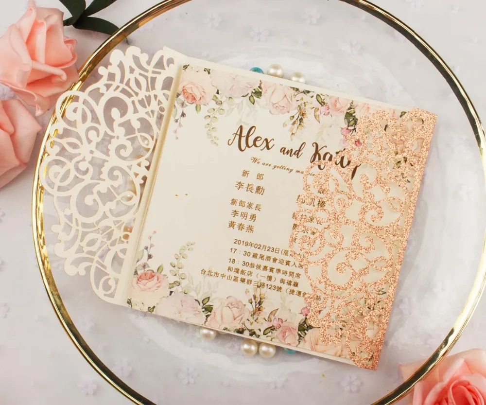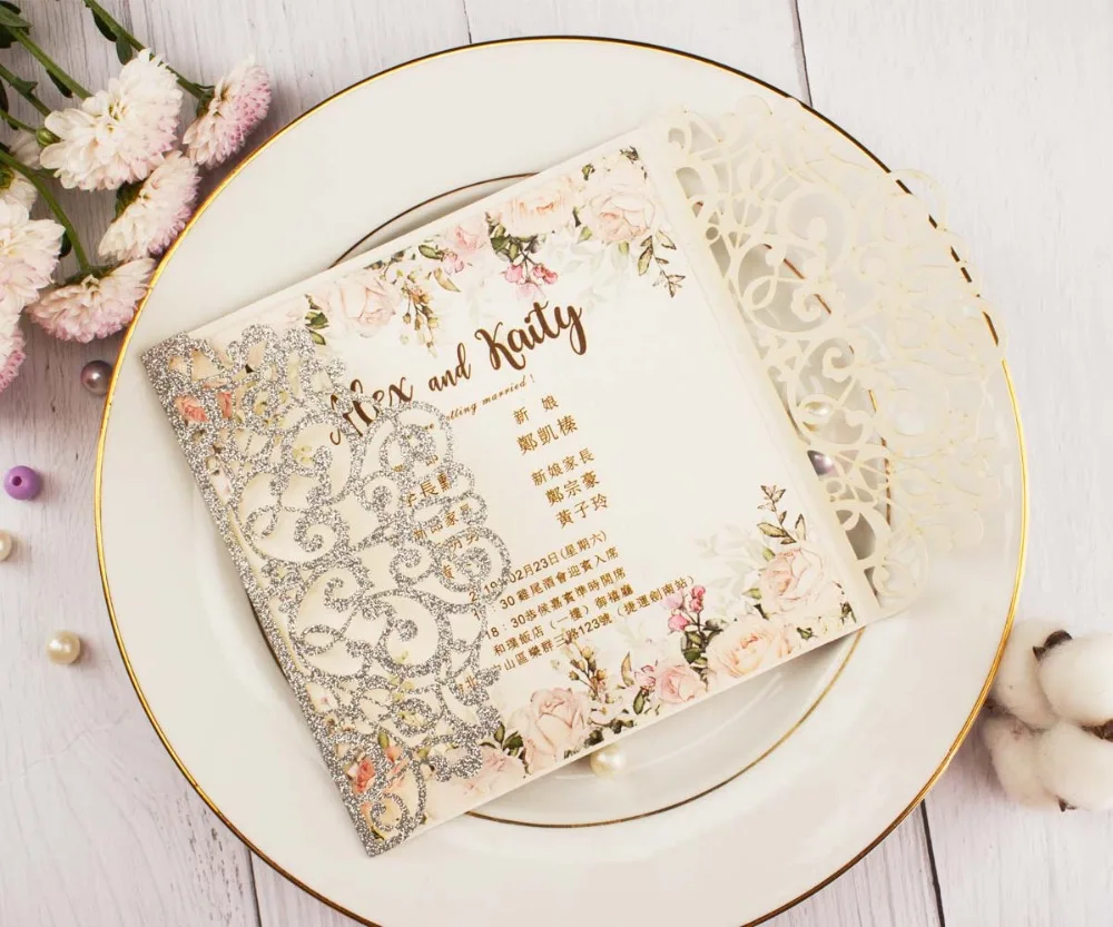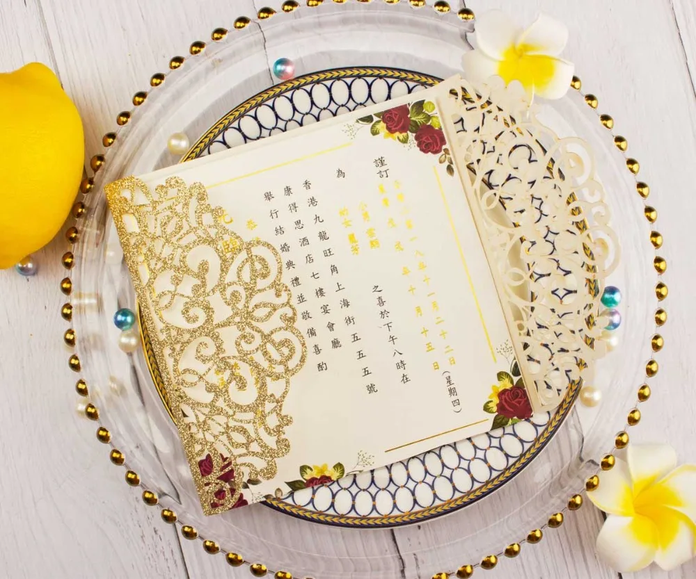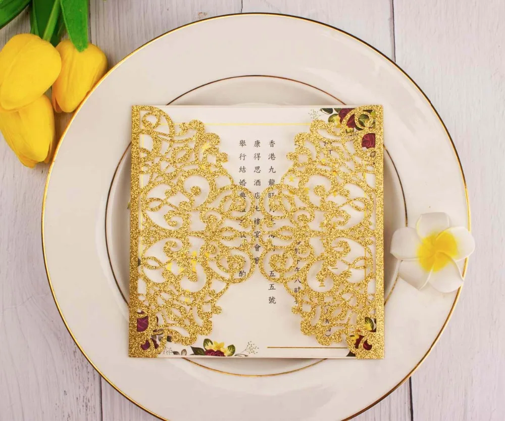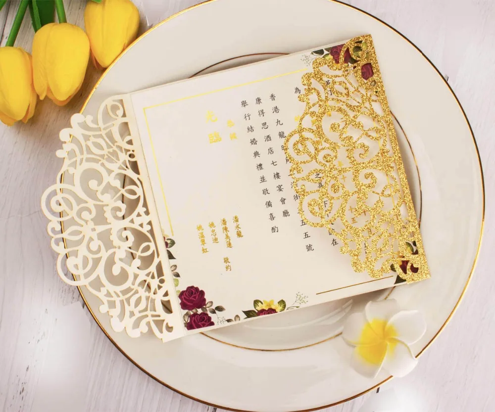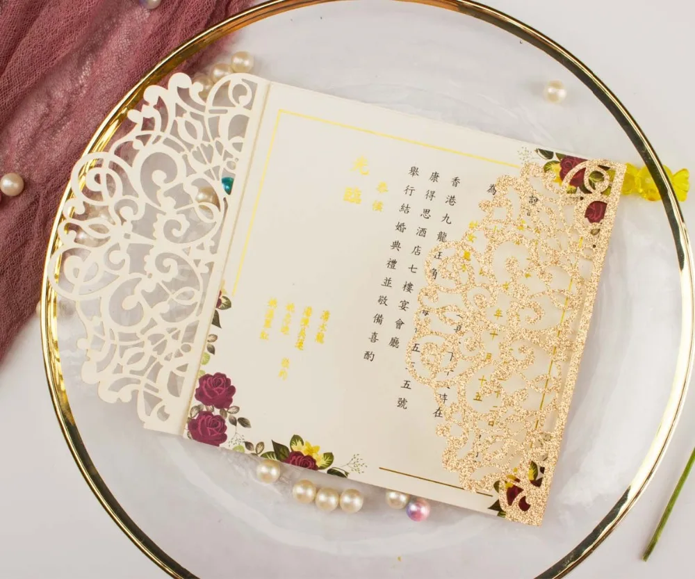 50 шт. полый лазерный разрез квадратная роза красное золото Серебристая блестящая бумага открытка свадебные пригласительные открытки Пригласительные ворота Вечерние
