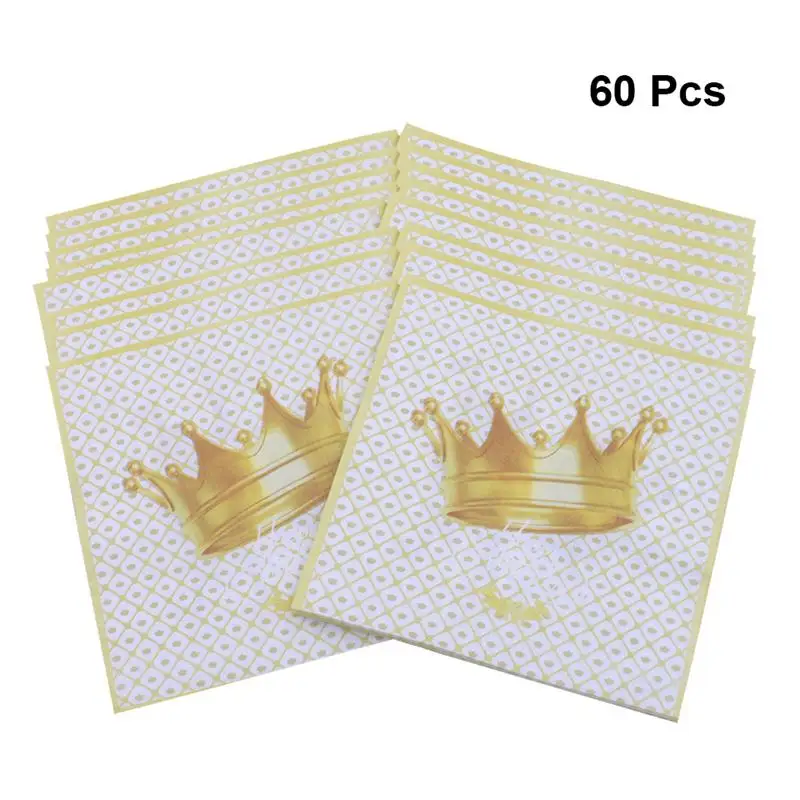 60 Pcs Paper Towels Creative Golden Crown Printed Square Handkerchief Napkins for Wedding