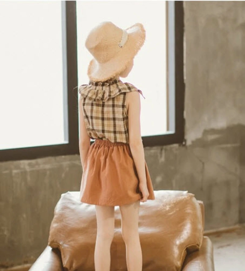 Детские комплекты одежды для девочек Лето 2020, клетчатые топы без рукавов + коричневые юбки Комплекты из 2 предметов детская хлопковая повседневная одежда для От 3 до 8 лет CS105