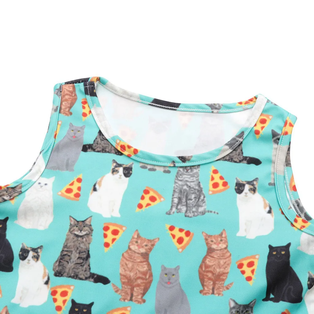 Детское платье без рукавов с рисунком кошки для девочек-подростков; праздничный сарафан; одежда