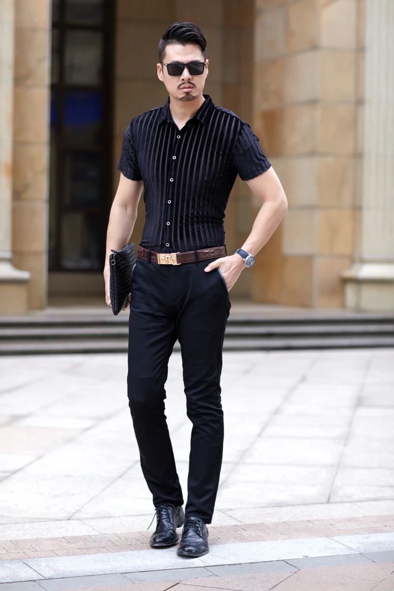Мужская рубашка с длинным рукавом разноцветная приталенная для ночного клуба