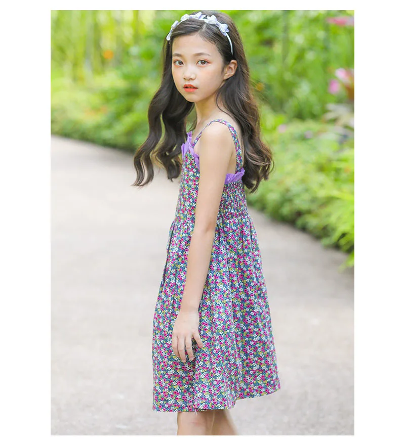 Пляжные Платья с цветочным принтом для девочек-подростков, летние Вечерние платья из хлопка для детей, 2019