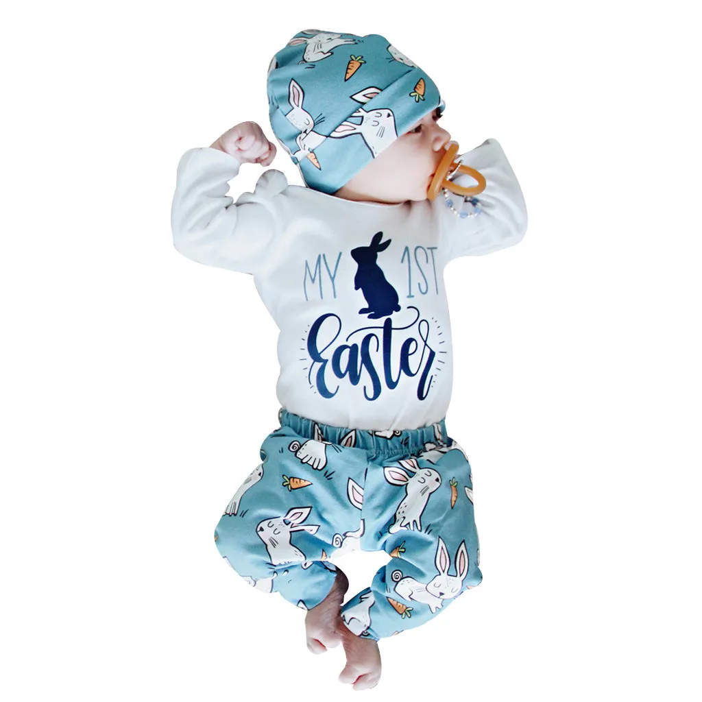 Одежда для новорожденных мальчиков и девочек с героями мультфильмов, пасхальные наряды кролика, комбинезон, шапка, штаны, комплект