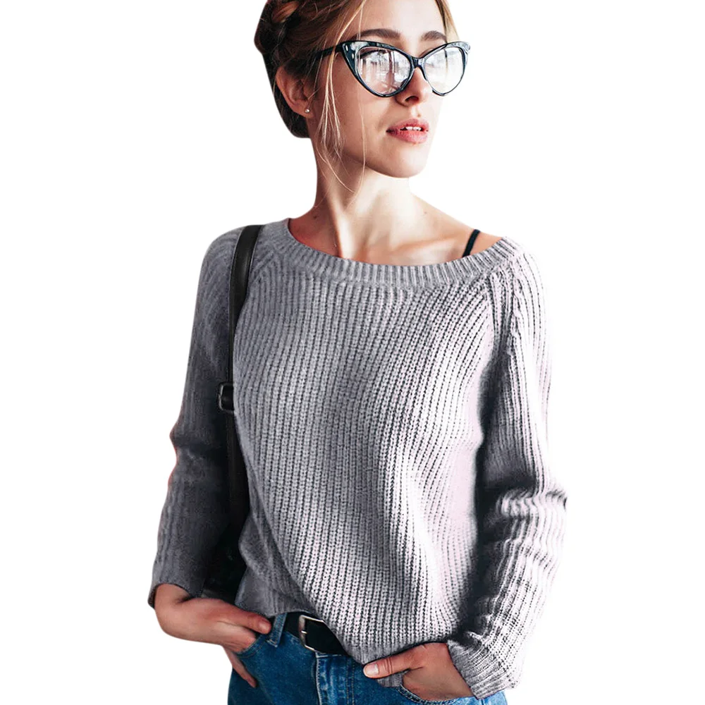 Женский свитер с вырезом-лодочкой, весенне-осенний свободный тонкий пуловер в рубчик с длинными рукавами, трикотажная рубашка, женский свитер, распродажа