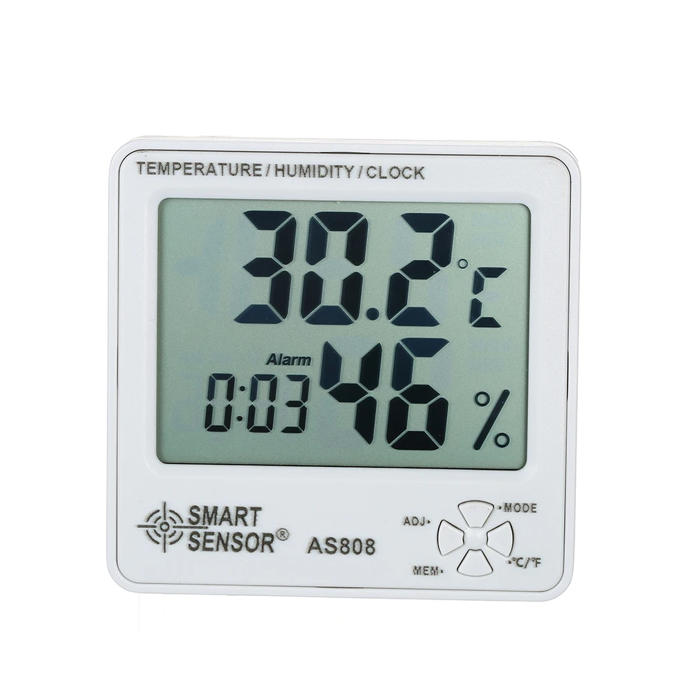 Измеритель влажности AS808 цифровой гигрометр термометр тестер метеостанция с календарем будильник