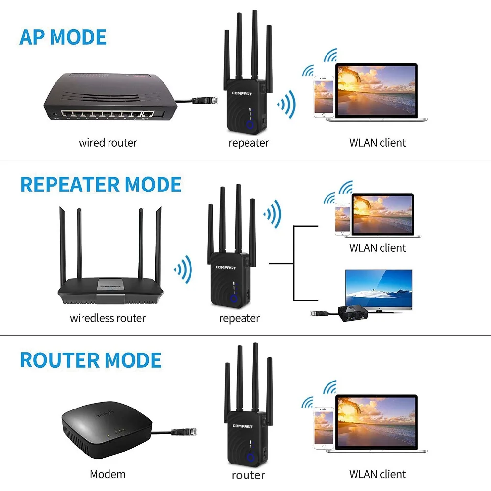 Comfast CF-WR754AC AC1200 WIFI ретранслятор/маршрутизатор/точка доступа 5,8 ГГц беспроводной Wi-Fi расширитель диапазона 802.11AC Wifi усилитель сигнала