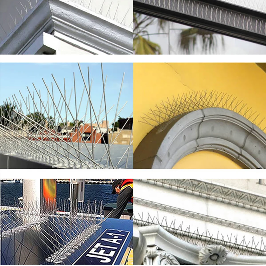 > Легко установить анти-птичьи шипы для защиты заборов, оконных выступов, желобов и полостей крыши, даже может быть установлен на круглых поверхностях.