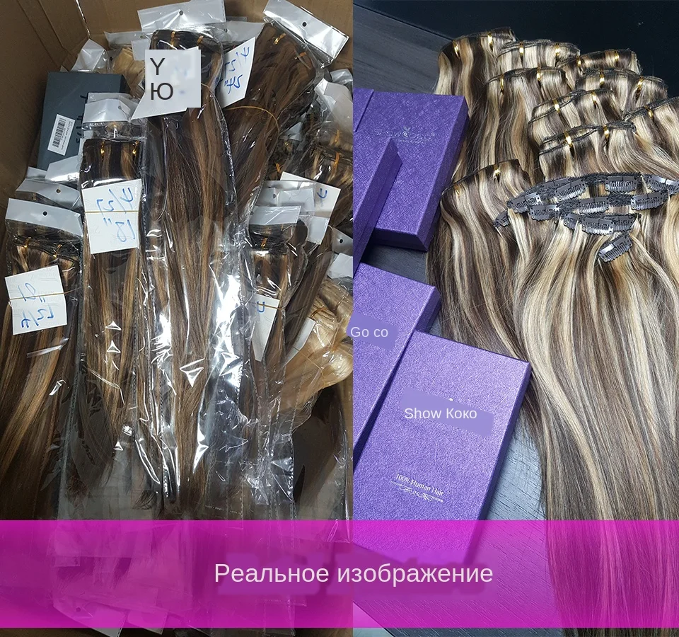 ShowCoco человеческие волосы для наращивания на заколках объемная волна 7 шт. в