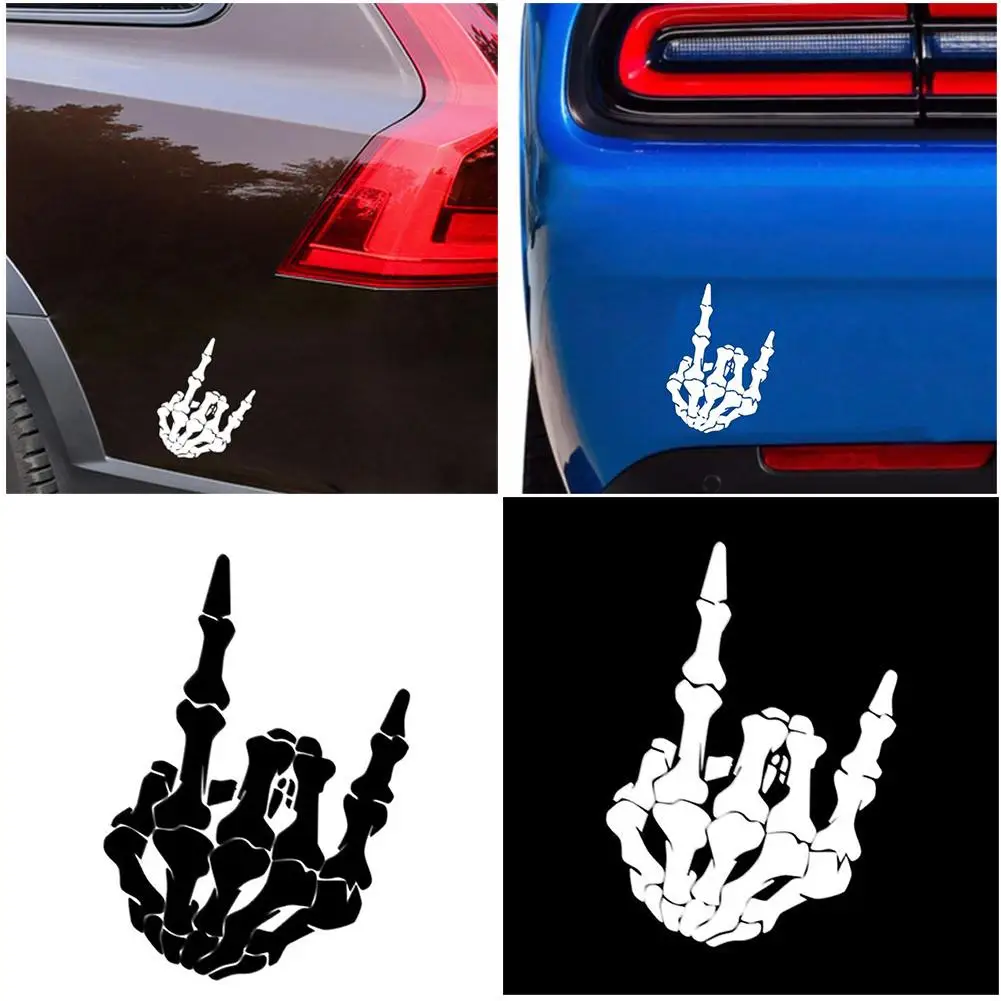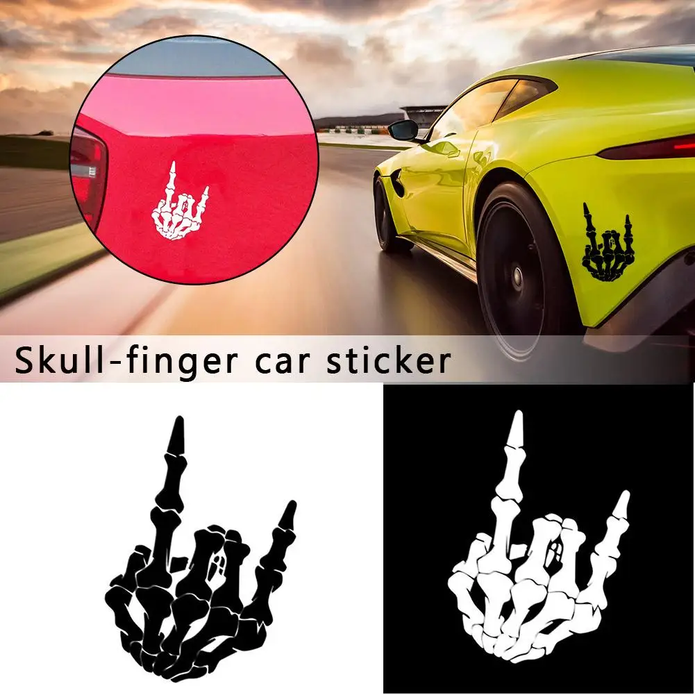Название продукта: 12,8*17,7 см персонализированный череп в форме пальца черный/серебристый автомобиль светоотражающие декоративные Стикеры для автомобилей Особенности: