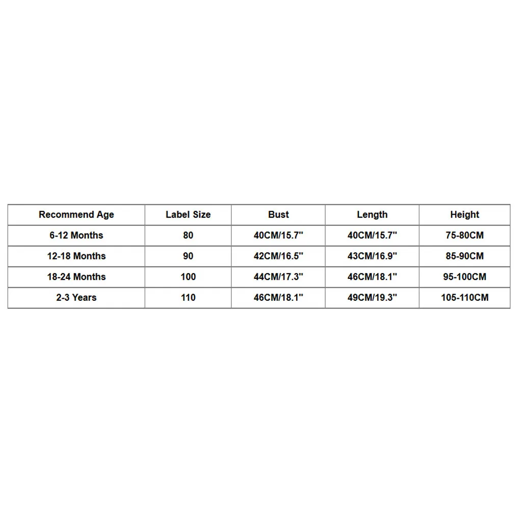 Обратите внимание что небольшая разница в цвете считается приемлемой. Это может быть связано с положением источника света и с настройками экрана.Рекомендуемый возраст Размер этикетки Бюст Длина Высота 6-12 месяцев 80 40 см/15,7" 40 см/15,7" 75-80 см 12-18 месяцев 90 42 см/16,5 дюйма 43 см/16,9" 85-90 см 18-24 месяцев 100 44 см/17,3 дюйма 46 см/18,1" 95-100 см От 2 до 3 лет 110 46 см/18,1" 49 см/19,3" 105-110 см Рекомендуемый возраст: 6-12 месяцев Размер этикетки: 80 Бюст: 40 см/15,7" Длина: 40 см/15,7" Высота: 75-80 см Рекомендуемый возраст: 12-18 месяцев Размер этикетки: 90 Обхват груди: 42 см/16,5 дюйма Длина: 43 см/16,9" Высота: 85-90 см Рекомендуемый возраст: 18-24 месяцев Размер этикетки: 100 Бюст: 44 см/17,3" Длина: 46 см/18,1" Высота: 95-100 см Рекомендуемый возраст: От 2 до 3 лет Размер этикетки: 110 Бюст: 46 см/18,1" Длина: 49 см/19,3" Высота: 105-110 см
