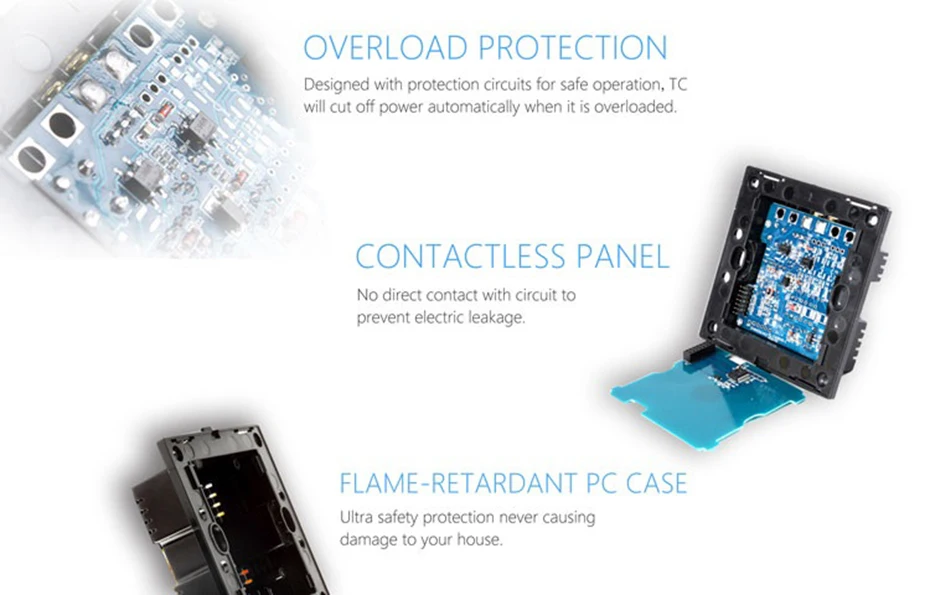 -С Сенсорной функцией и функцией дистанционного управления, он должен работать с Broadlink RM4 PRO RM PRO для функции дистанционного управления. -Дистанционное управление дистанционным управлением на дальние расстояния, до 100 метров в открытом поле и до 20 метров в помещении. -Упрочненная стеклянная панель, не выцветает, элегантный и стильный -Очень чувствительное сенсорное управление, очень удобное -Интегрированный дизайн панели, водонепроницаемый и анти-ползучий, Безопасный в использовании -Сенсорное управление обеспечивает более длительный срок службы, чем механический переключатель -Широко используется для товарных домов, вилл, отелей и т. д.