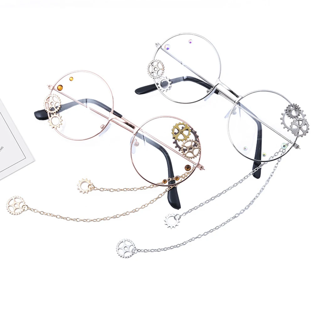 В стиле панк, унисекс круглый круг полые шестерни цепи очки оправы для очков