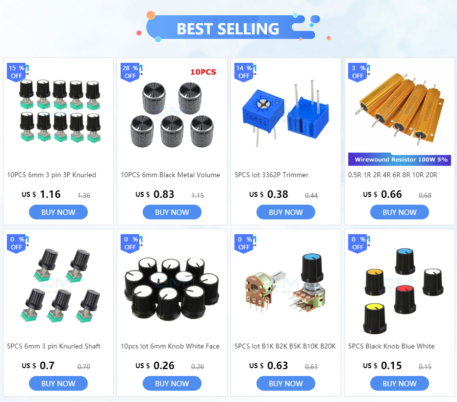 Сопротивление: 1K Ом, 5K Ом, 10K Ом, 20K Ом, 50K Ом, 100K Ом, 500K Ом